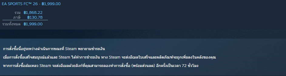 มาวันนี้ กดซื้อ EAFC26 ตัดเงินจากบัตรไปแล้ว แต่ยังซื้อไม่สำเร็จ งงมากๆเลยครับ