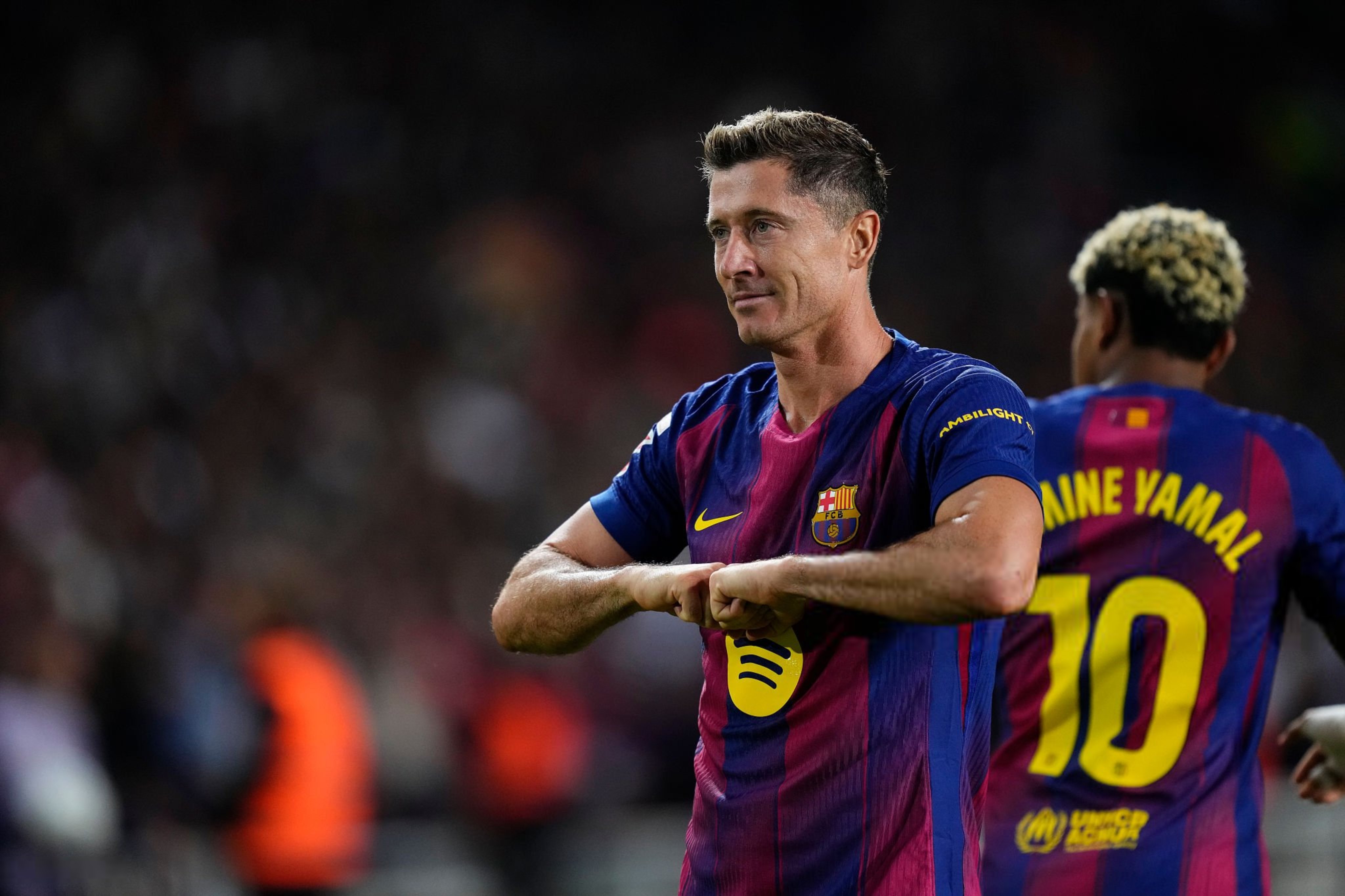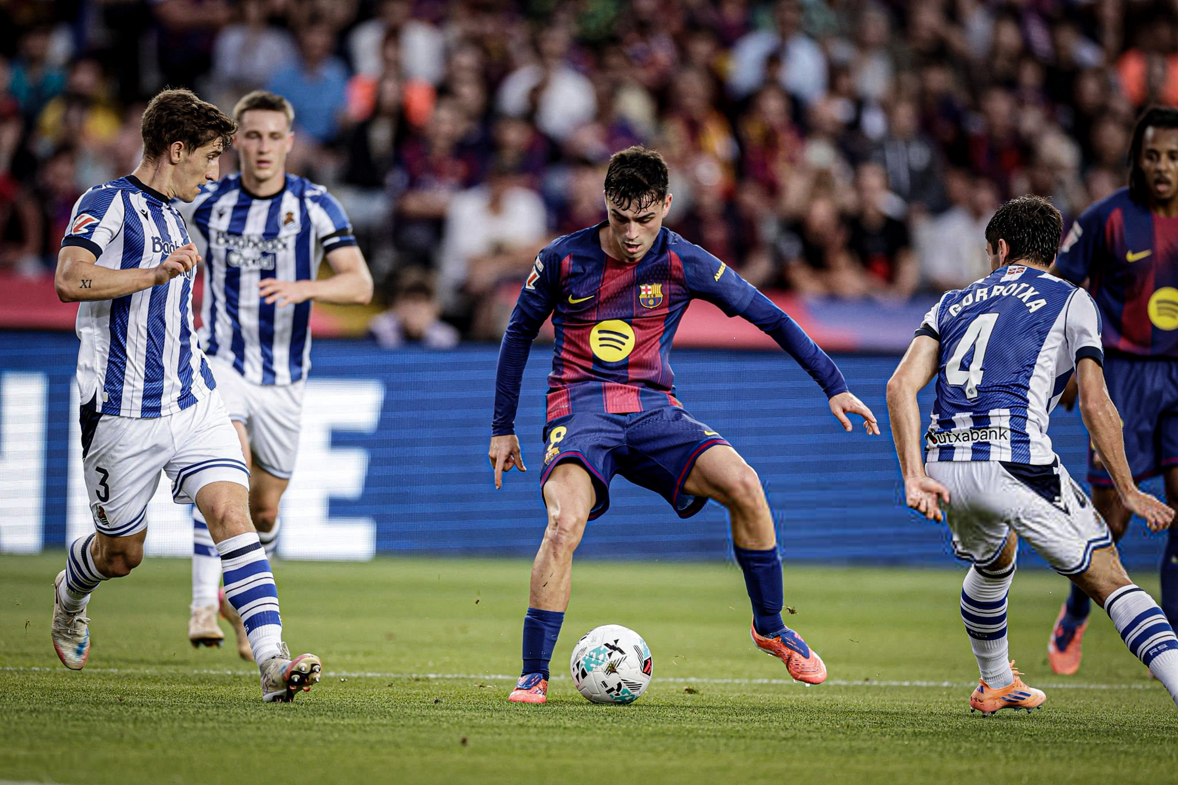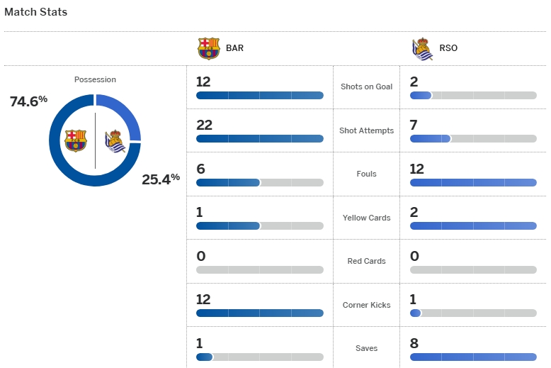 บาร์เซโลน่า ขึ้นนำจ่าฝูงลาลีกาเป็นที่เรียบร้อย หลังอาศัยโอกาสที่ เรอัล มาดริด พลาดท่าแพ้ในศึกมาดริดดาร์บี้ ด้วยการเปิดบ้านเฉือน เรอัล โซเซียดาด 2-1 แม้ทีมเยือนออกนำก่อนจาก อัลบาโร่ โอดริโอโซล่า นาทีที่ 30 ฌูลส์ คุนเด้ ก็โหม่งตีเสมอได้ก่อนหมดครึ่งแรก จากนั้นครึ่งหลัง ลามีน ยามาล แผลงฤทธ์สัมผัสแรกครอสบอลให้ โรเบิร์ต เลวานดอฟสกี้ โขกพังประตูชัยนาทีที่ 59
