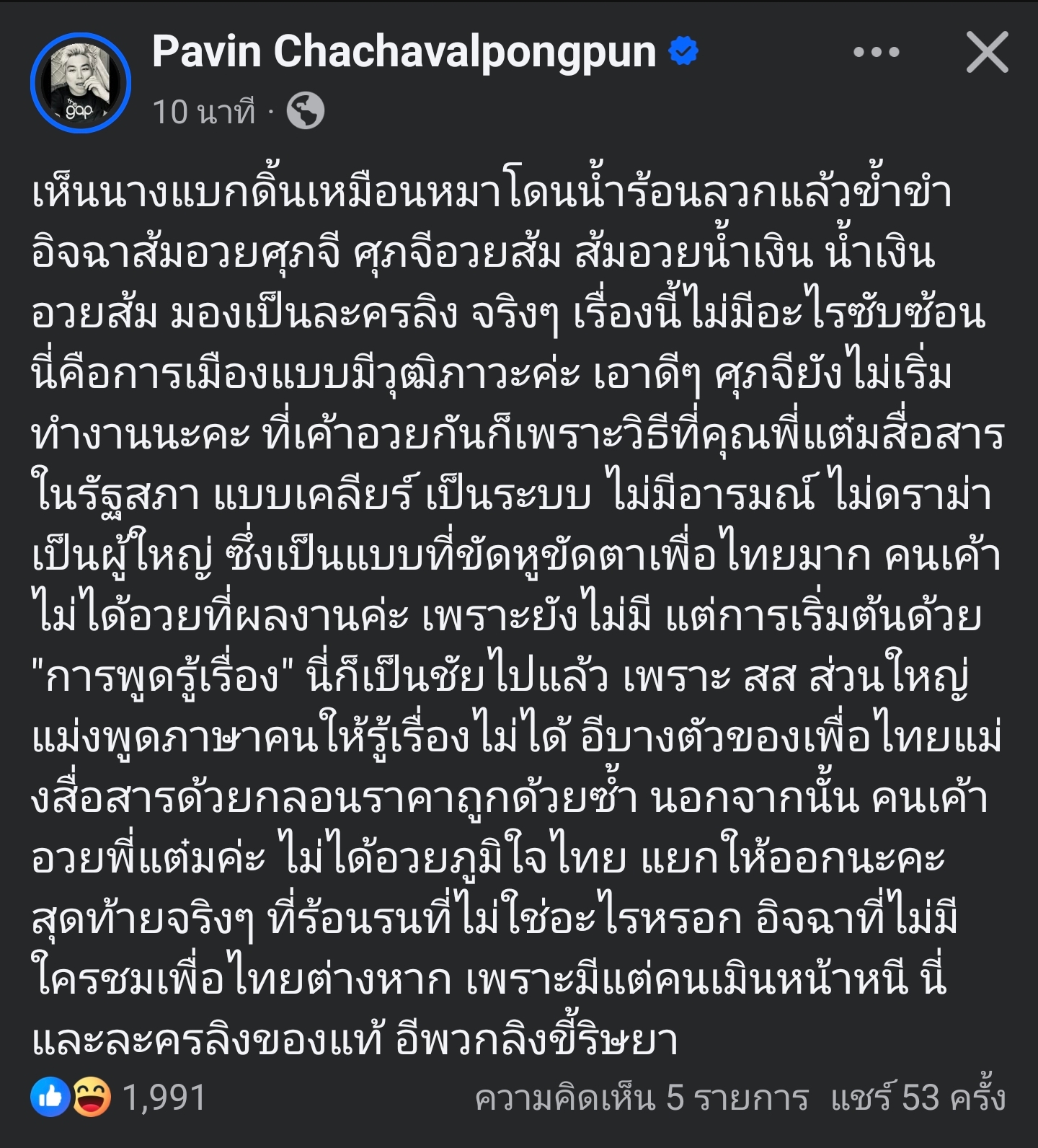 ตอบได้ดีก็ควรให้คะแนนนะไม่ว่าจากพรรคไหนก็เหอะ