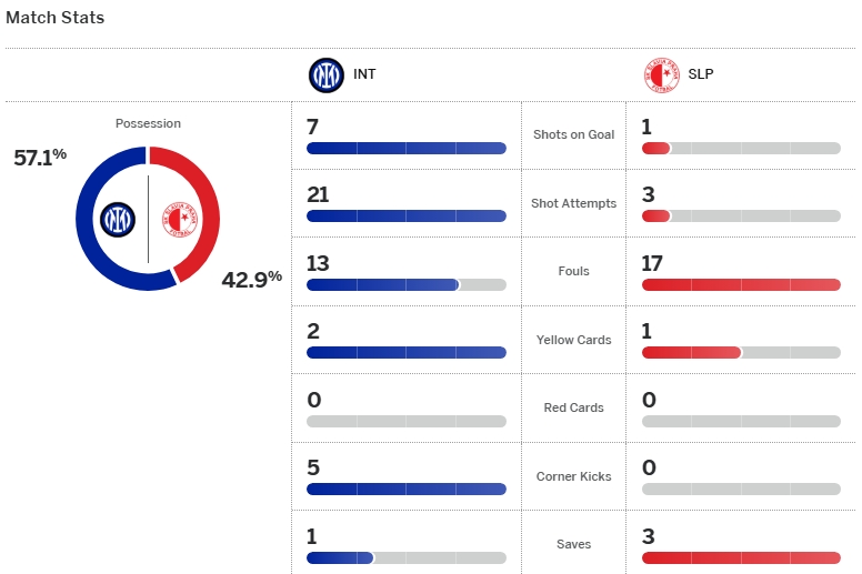 เจ้าบ้านคุมเกมเหนือกว่าในช่วงต้น แล้วมาได้ลุ้นจบสกอร์อีก เลาตาโร่ จ่ายให้ ตูราม ยิงด้วยขวาแต่ติดเซฟ สตาเน็ค