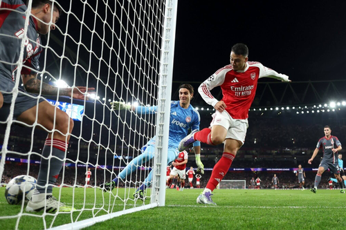 ซาก้า ทำชิ่งกับ โอเดการ์ด จนได้หลุดเข้าฝั่งซ้ายเขตโทษยิงลอดขา โซลาคิส ปิดกล่อง 2-0 เกมยุโรปถัดไปเปิดบ้านรับ แอตมาดริด ส่วน โอลิมเปียกอส รอแก้ตัวเยือน บาร์เซโลน่า