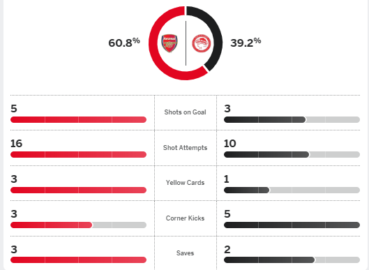 วิคเตอร์ เยอเคเรส ยิงติดเซฟชนเสาเข้าทาง กาเบรียล มาร์ติเนลลี่ ซ้ำเผาขนขึ้นนำตั้งแต่ 12 นาที แล้วต้องรอถึงทดเจ็บครึ่งหลัง บูกาโย่ ซาก้า ลงสำรองมาปิดกล่อง อาร์เซน่อล เปิดบ้านชนะ โอลิมเปียกอส แชมป์ลีกกรีซ 2-0 เก็บ 6 แต้มจาก 2 นัดแรกใน แชมป์เปี้ยนส์ ลีก รอบลีกเฟส