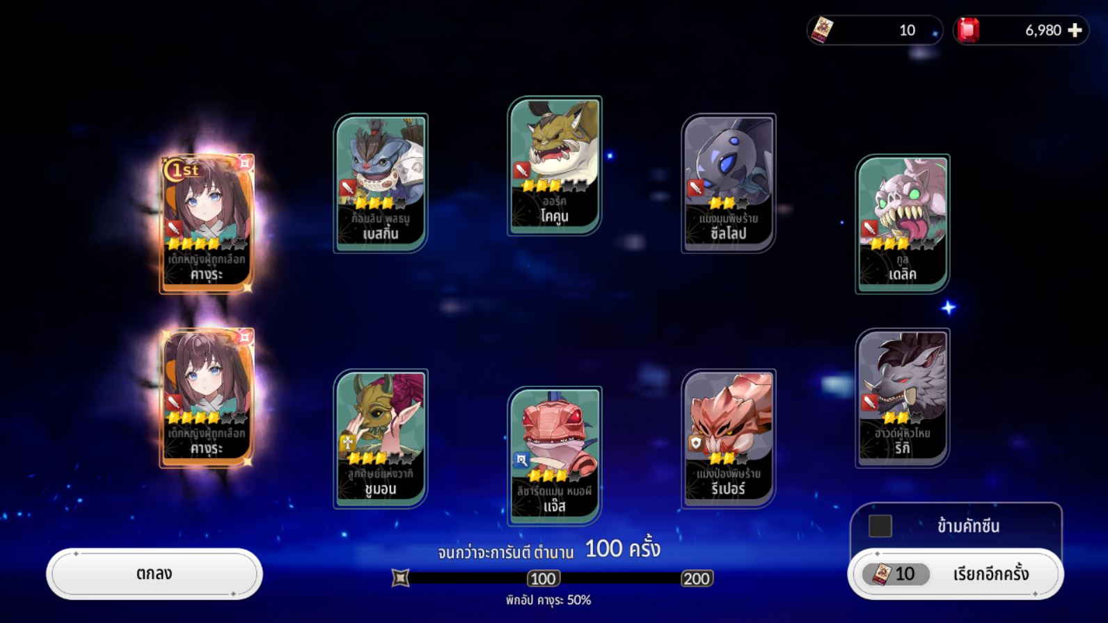 เมื่อกี้ เปิดของฟรี ได้ยอนฮี ตอนนี้ ติดด่านผจญภัย ด่าน 10