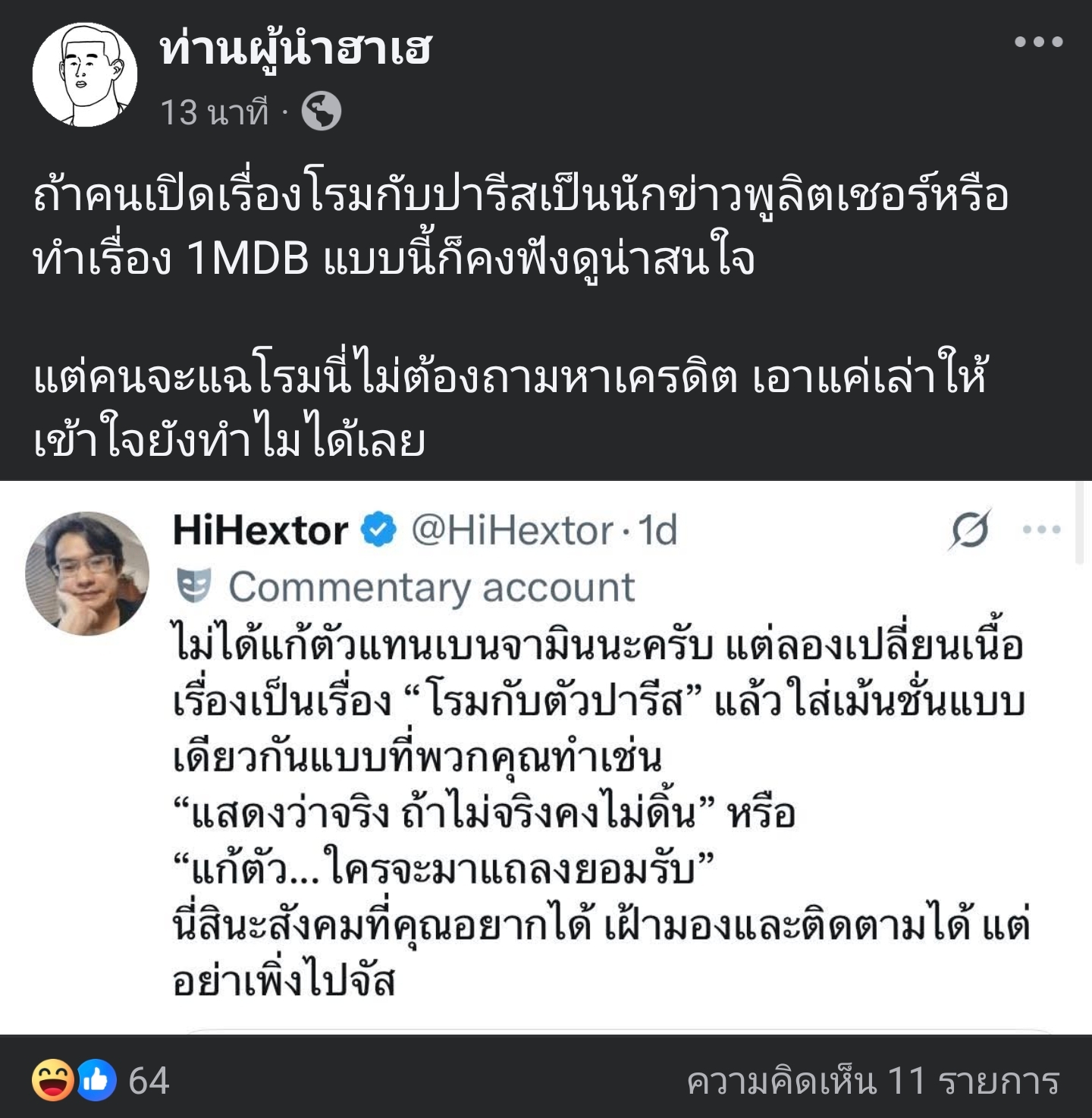 สำหรับใครที่ไม่เข้าใจไอ้เรื่องตั๋วปารีส ไปหาอ่านโพสเก่าๆของจารย์ปวินดูเอาครับ ที่เรื่องมันเงียบเพราะมันไม่มีมูลอะไรเลย ไอ้คนที่เอามาเล่นแรกๆTOPNEWSยังเลิกพูดถึงอ่ะ คนจัดงานที่ต่างประเทศด่าTOPNEWSออกสื่อด้วยซ้ำ …. ไม่น่าเชื่อว่าคนไปขุดเอาเรื่องนี้มาพูดกลายเป็นพวกแดงเฉย5555 แถมไม่รู้เรื่องรายละเอียดอะไรเลยมั้งนั้น