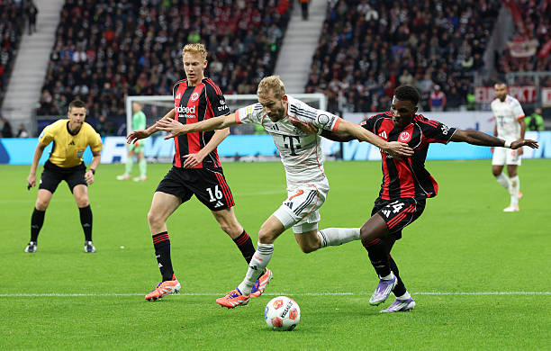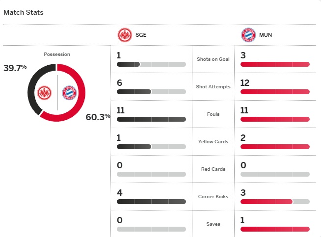 บาเยิร์นยังดูดีกว่า พวกเขาเพรสสูงกดดันจนแนวรับแฟรงเฟิร์ตต้องเอาตัวรอด เป็นชอตแก้ไข แทบไม่ได้เซ็ตเกมรุกเลย