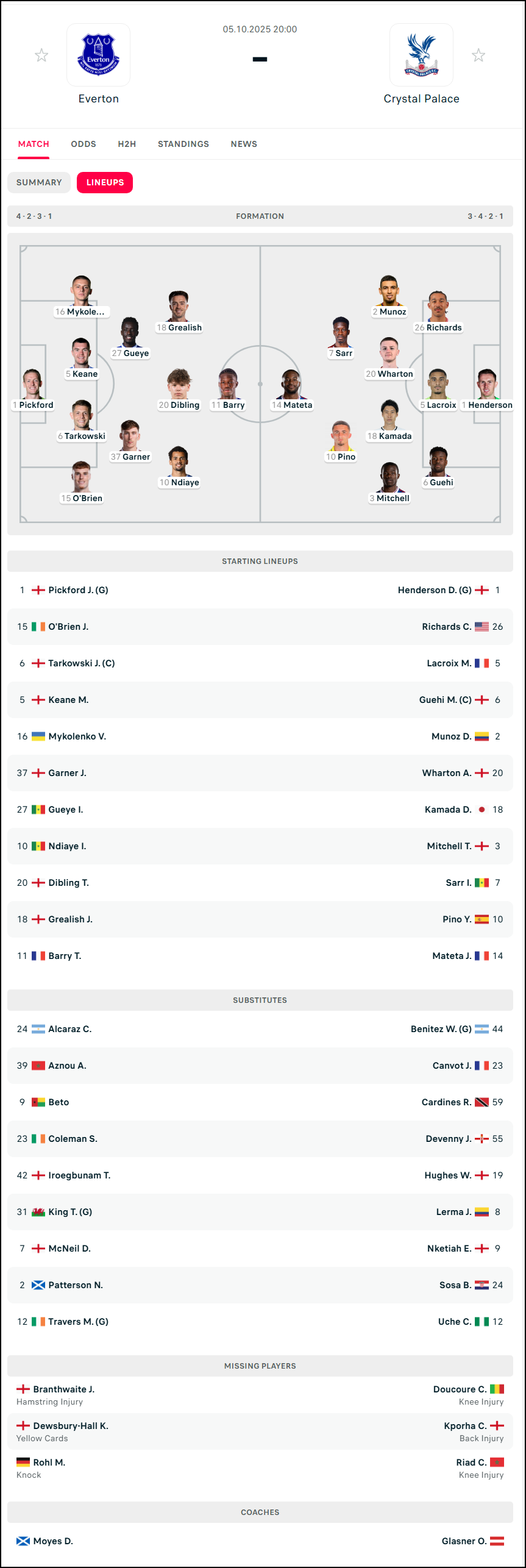20:00 [EPL] Ast-Bur / Eve-Cry / New-Not / Wol-Bha