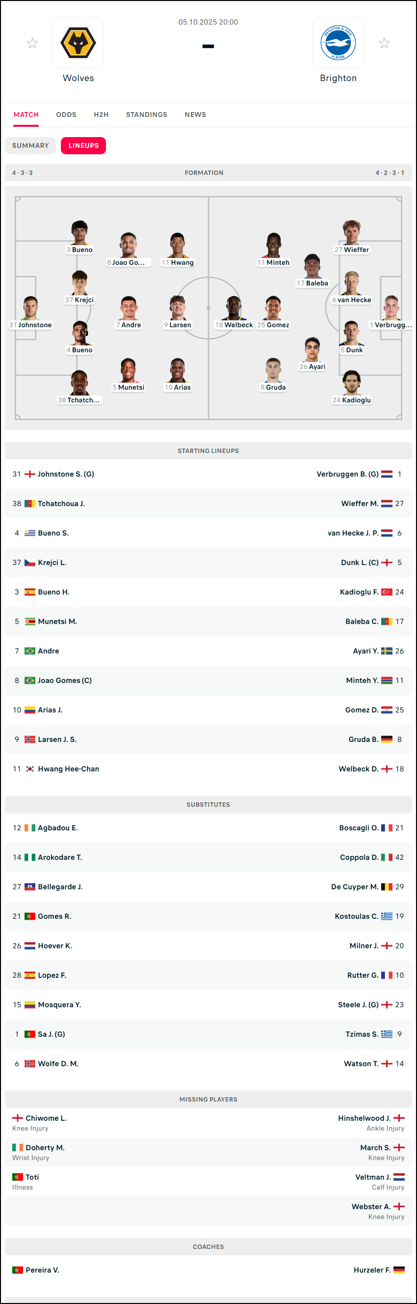 [Live] 20:00 [EPL] Ast-Bur / Eve-Cry / New-Not / Wol-Bha