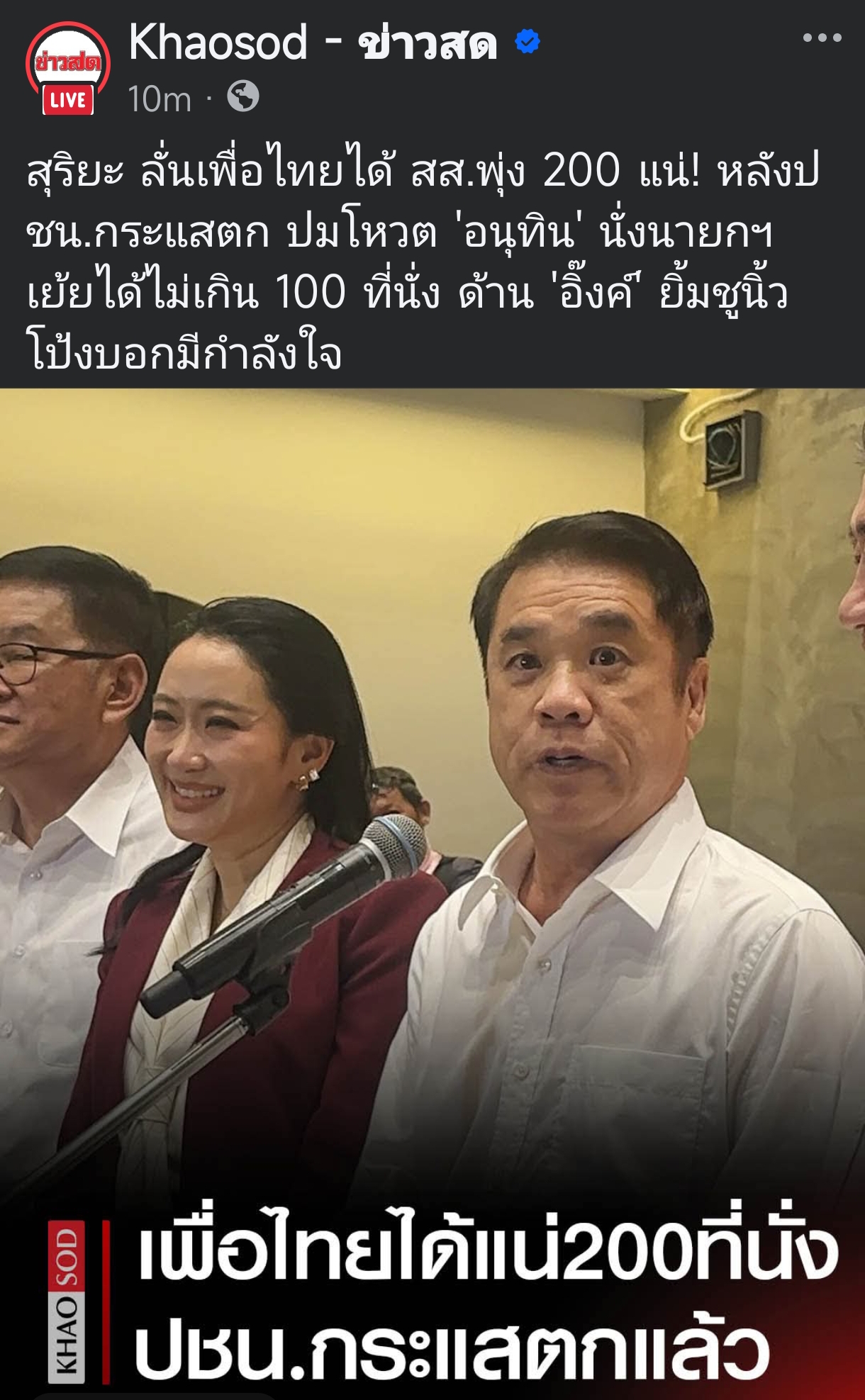 [RE: เพื่อไทยได้แน่200ที่ ปชน.กระแสตกแล้ว]