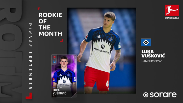ลูก้า วูสโควิช เซ็นเตอร์ดาวรุ่งซึ่ง ฮัมบูร์ก ยืมจาก ท็อตแน่ม ฮอตสเปอร์ โชว์ฟอร์มรับรางวัลดาวรุ่งยอดเยี่ยม บุนเดสลีก้า ประจำเดือน กันยายน