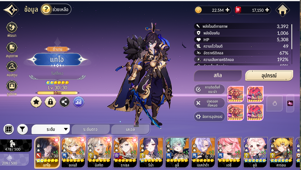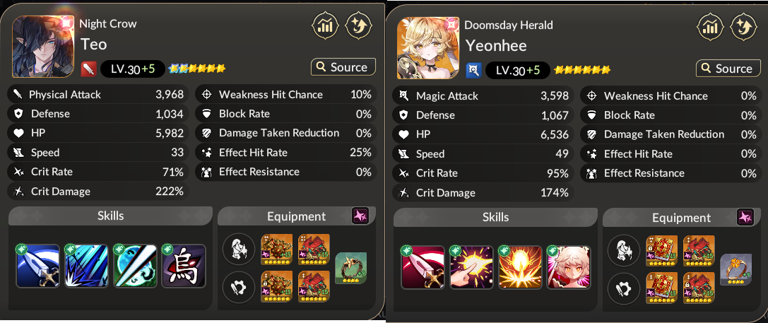 ทีมฟาม ส่วนตัวผมใช้ แทโอ C2 กับ ยอนฮี C0 ครับ Stat ตามรูปเลย