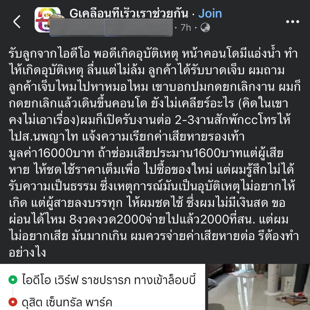 ก็คงโทษไรเดอร์ที่จอดรดตรงที่มี่แอ่งน้ำ ผู้โดยสารจะขึ้นรถลูกค้าเลยลื่น