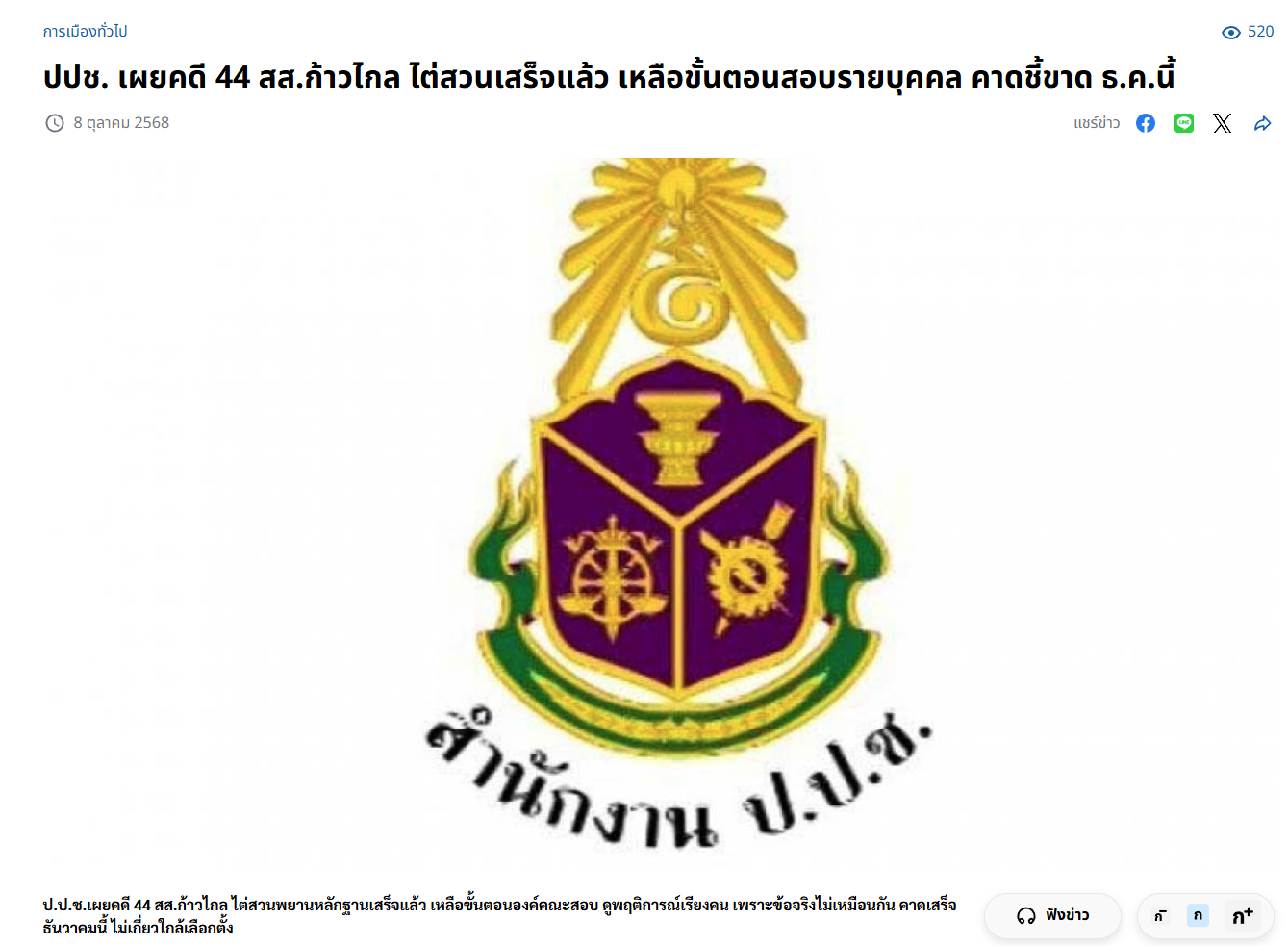 เสี่ยหนู มาแน่ ที่หนึ่งโพล พรรคส้มเตรียมโดน ปปช เชือด