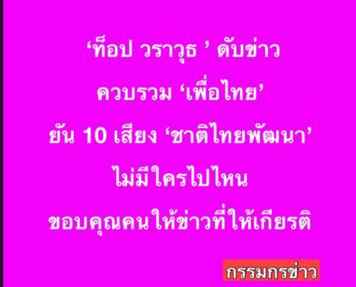 ‘มติชน’ รายงาน ‘ท็อป วราวุธ ’ ดับข่าว ควบรวม ‘เพื่อไทย’ ยัน 10 เสียง ‘ชาติไทยพัฒนา’ ไม่มีใครไปไหน