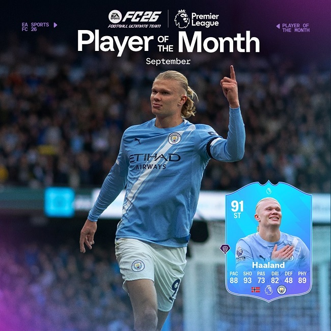 เออร์ลิ่ง ฮาลันด์ กองหน้าของ แมนเชสเตอร์ ซิตี้ คว้ารางวัลนักเตะยอดเยี่ยมของพรีเมียร์ลีกประจำเดือนกันยายน หลังจากซัดไป 5 ตุงกับอีก 1 แอสซิสต์จากการลงเล่น 3 นัด
