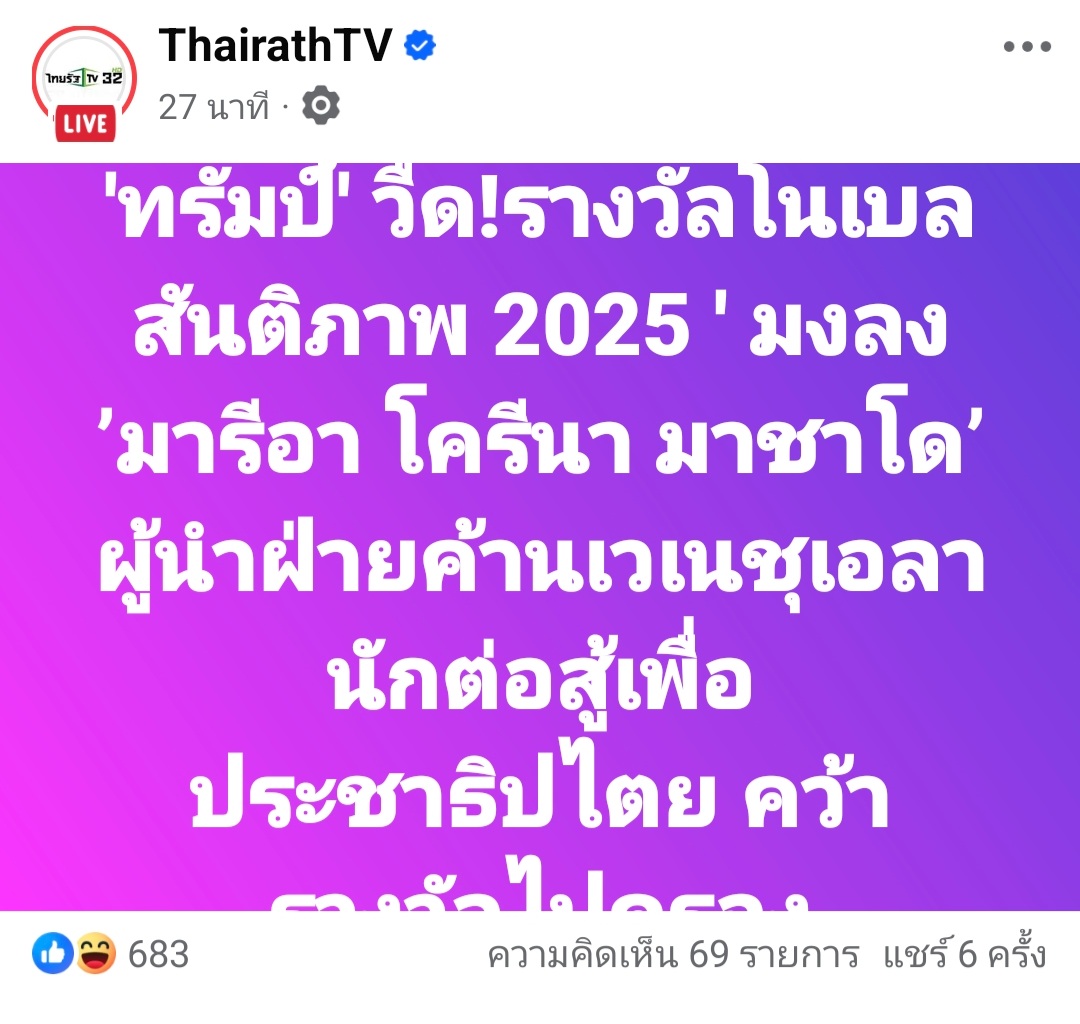 [RE: Official: ทรัมป์ไม่ได้รางวัลโนเบล]