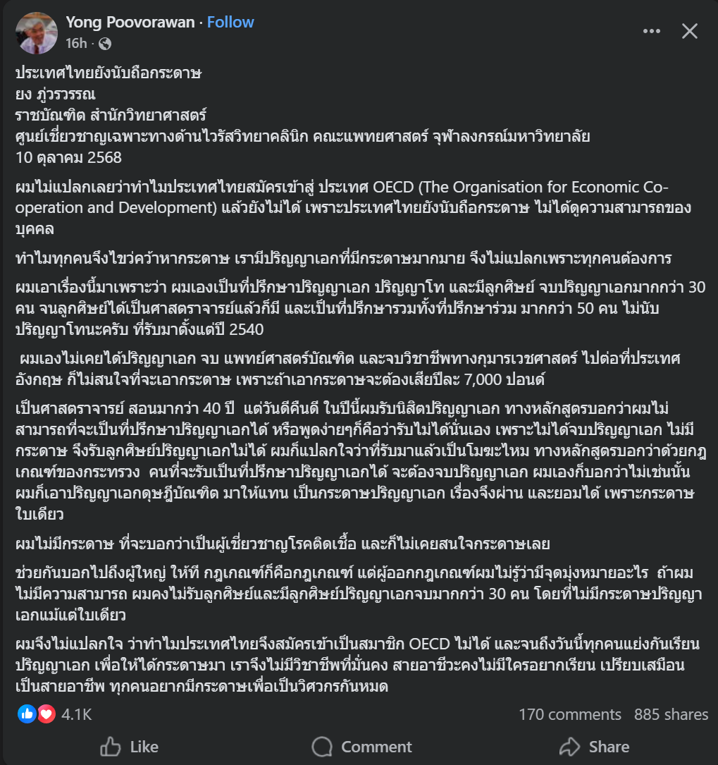 เพ้อเจ้อผูกใจเจ็บไปเรื่อง OECD เพราะแค่ตัวเองไม่สามารถรับเด็กป.เอกมาทำวิจัยไม่ได้แค่นั้นแหละ