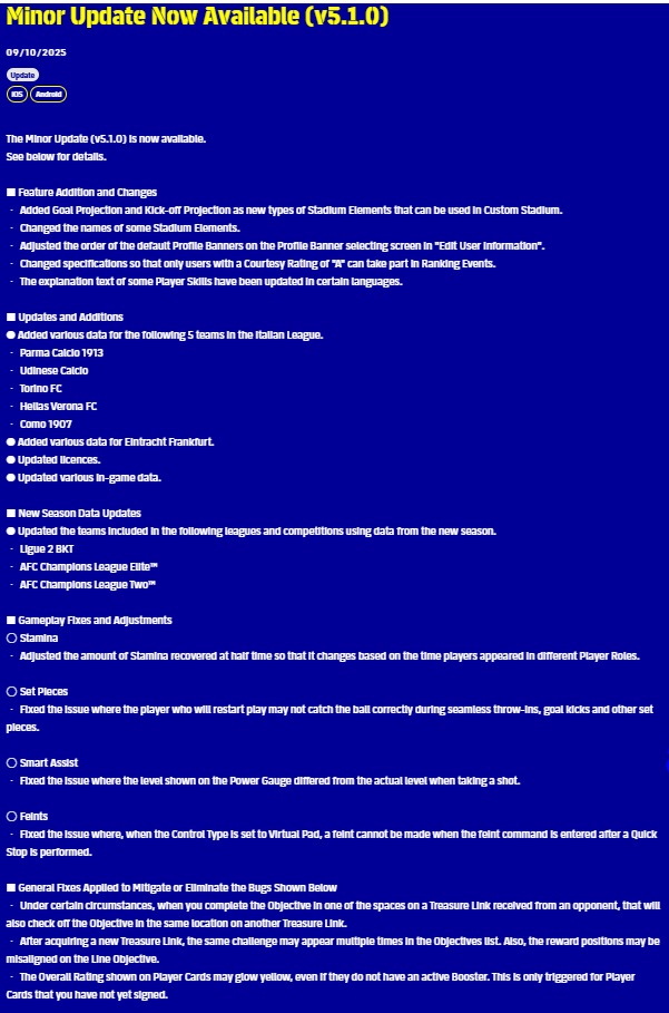 eFootball V.5.1.0 EP.1 Minor update