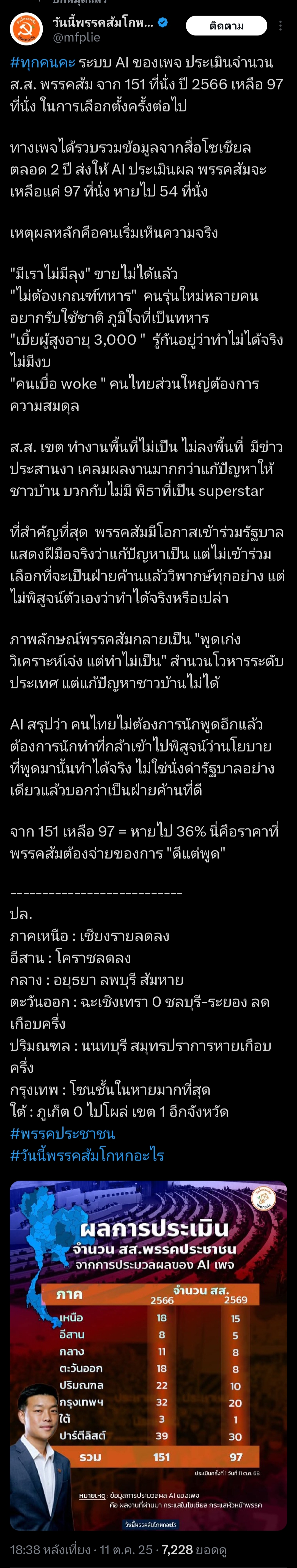 [RE: ผลการประเมินจำนวน สส.พรรคประชาชน ในการเลือกตั้งครั้งหน้าเหลือ 97 ที่นั่ง]