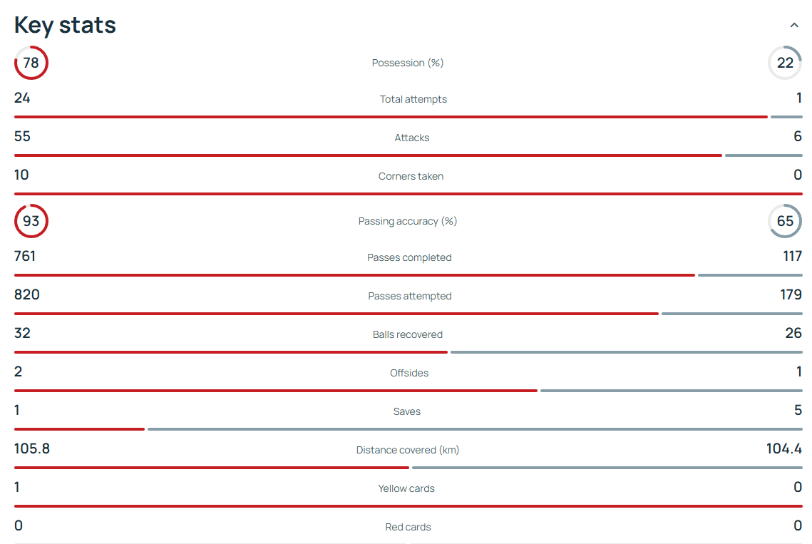 ปอร์โร่จ่ายยัดมาให้โอยาร์ซาบาลจับหนีตัวประกบสวยแล้วแต่จังหวะเข้ามายิงยังติดมาม่าที่ออกมาจากเส้นได้ทัน แล้วจังหวะต่อมาเฟร์รานหลุดพักอกหนีมาม่าไปแล้วแต่ยิงเข้าหน้าต่าง