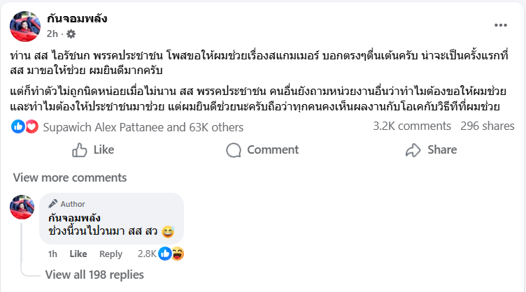 แต่โพสต์ของไอซ์เหมือนเด็กชวนทะเลาะ ไม่ชอบกันจอมพลังก็เข้าใจแต่ให้เชียร์ไอซ์ผมก็ไม่ไหวนะ ปากดีพอๆกันเลยสองคนนี้