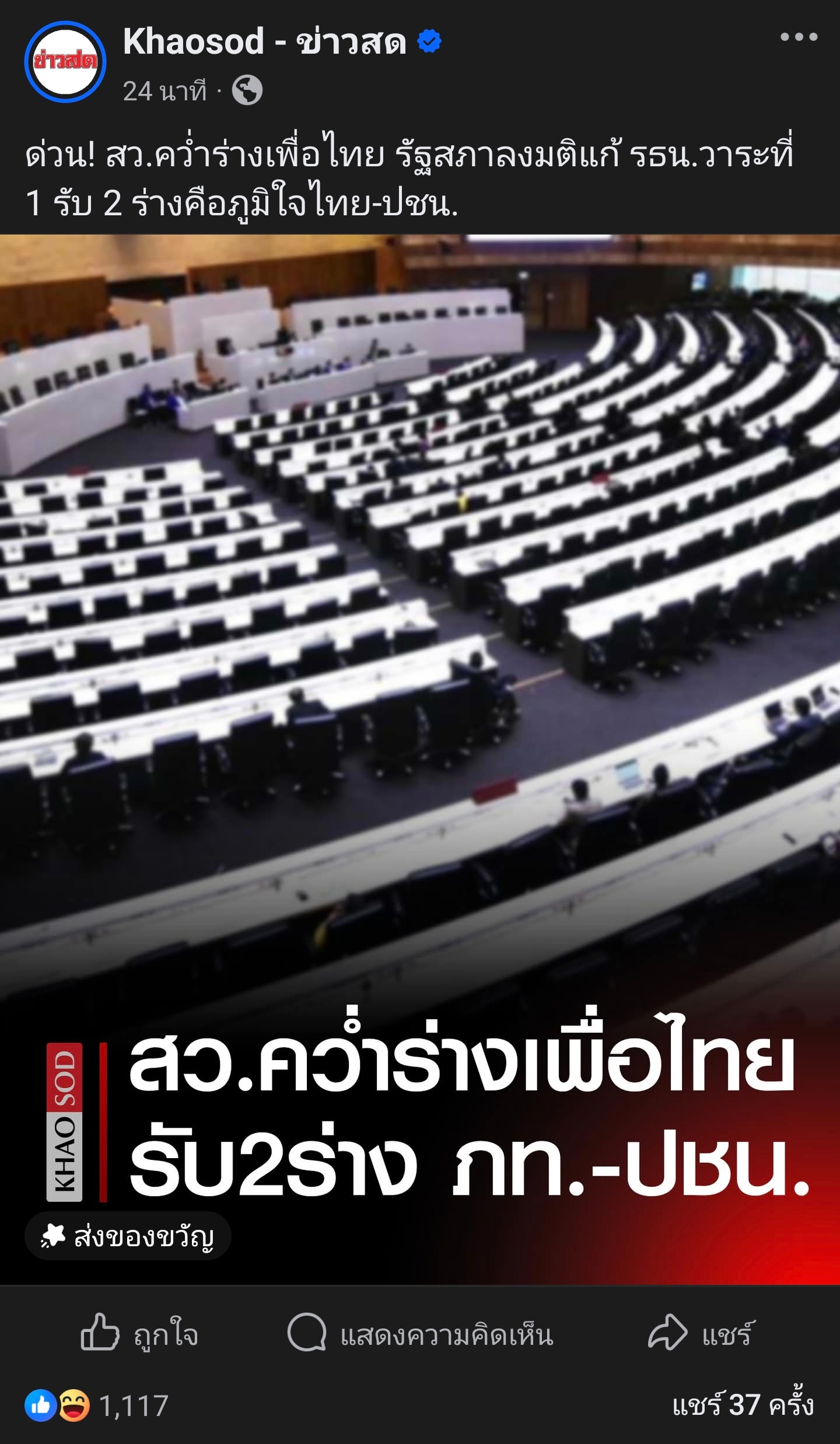 [RE: Breaking สว.คว่ำร่างเพื่อไทย รับ 2 ร่าง ปชน และภูมิใจไทย]
