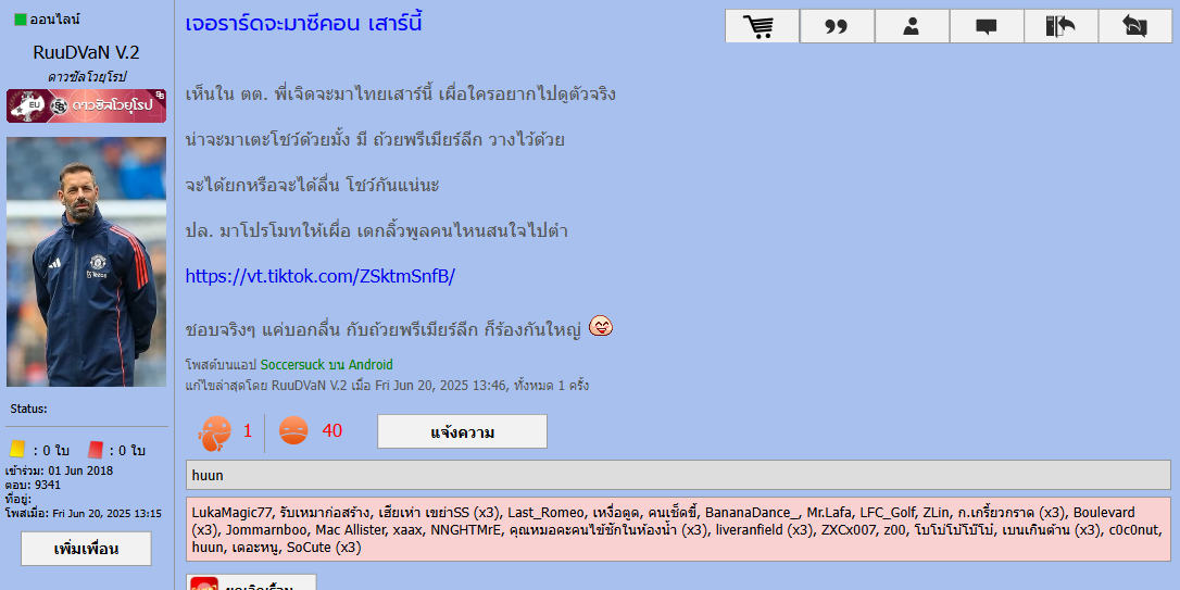 มาบอกว่าโดน 7-0 ได้แชมป์ลีกจะเบา ผมว่าไม่เบาหรอก 7-0 กับทีมคู่อริโดยตรง ยังไงก็จารึกไว้ในประวัติศาสตร์ โดนตลอดอยู่ดี ก็ปลอบใจตัวเองกันไปแล้วกันนะ เอาใจช่วยๆ