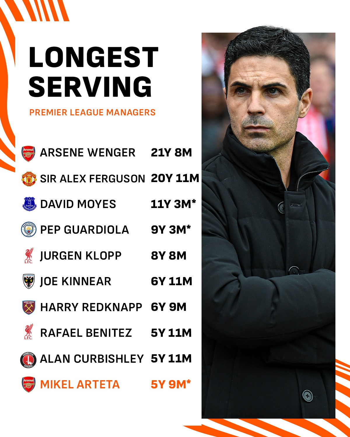 นับตั้งแต่เปลี่ยนเป็นพรีเมียร์ลีค แล้วก็คุมทีมเดิมต่อเนื่อง ไม่นับย้ายไปนู่นนี่แล้วกลับมาสโมสรเดิมแบบมอยส์