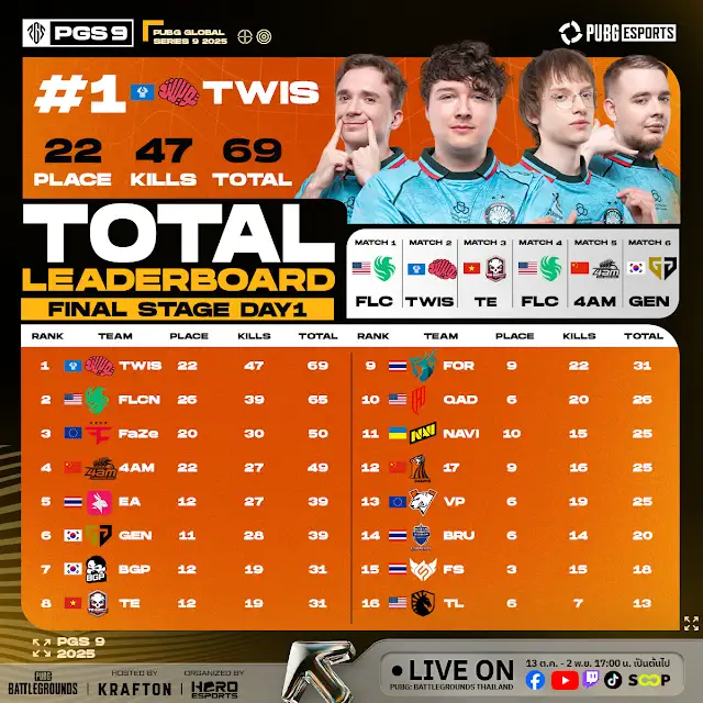 [RE: PUBG Global Series 9 Final วันที่ 1]