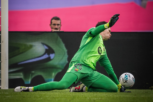 เกือบครึ่งชั่วโมง เฟร์นานเดซ หอกบาร์ซ่า ยังไม่มีโอกาสจบแต่จังหวะนี้เกี่ยวบอลเข้าเขตโทษให้ เฟรงกี้ ยิงเล่นทาง กาซซานิก้า พุ่งปัดเป็นเตะมุม