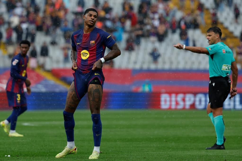 บาร์ซ่า บุกใส่ตั้งแต่ต้นแล้วไม่ถึง 5 นาที บัลเด้ เรียกฟรีคิกริมเส้นฝั่งซ้าย แรชฟอร์ด รับหน้าที่ยิงยัดมุมแคบ แต่บอลไม่ห่าง กาซซานิก้า ทุบทิ้ง