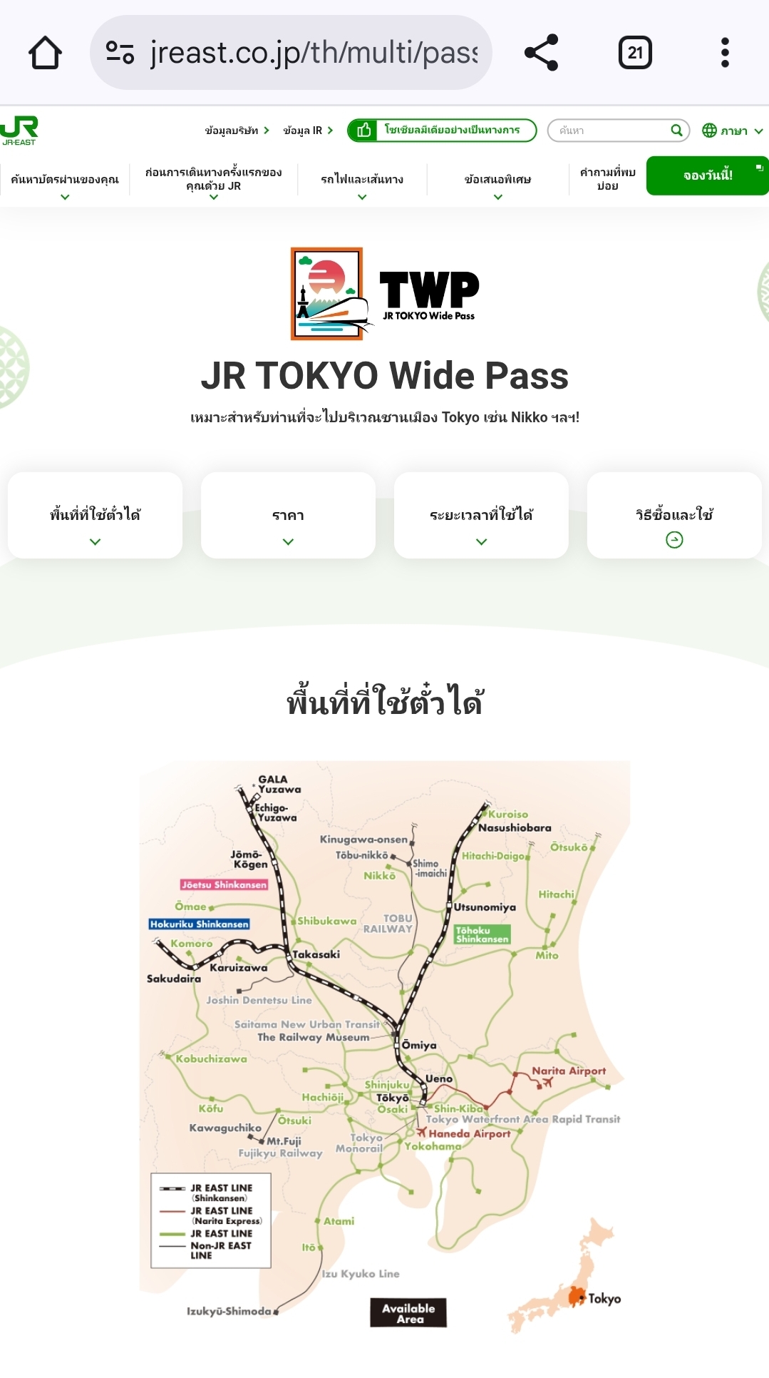 พาสที่แนะนำ JR Tokyo Wide Pass 15,000 เยน