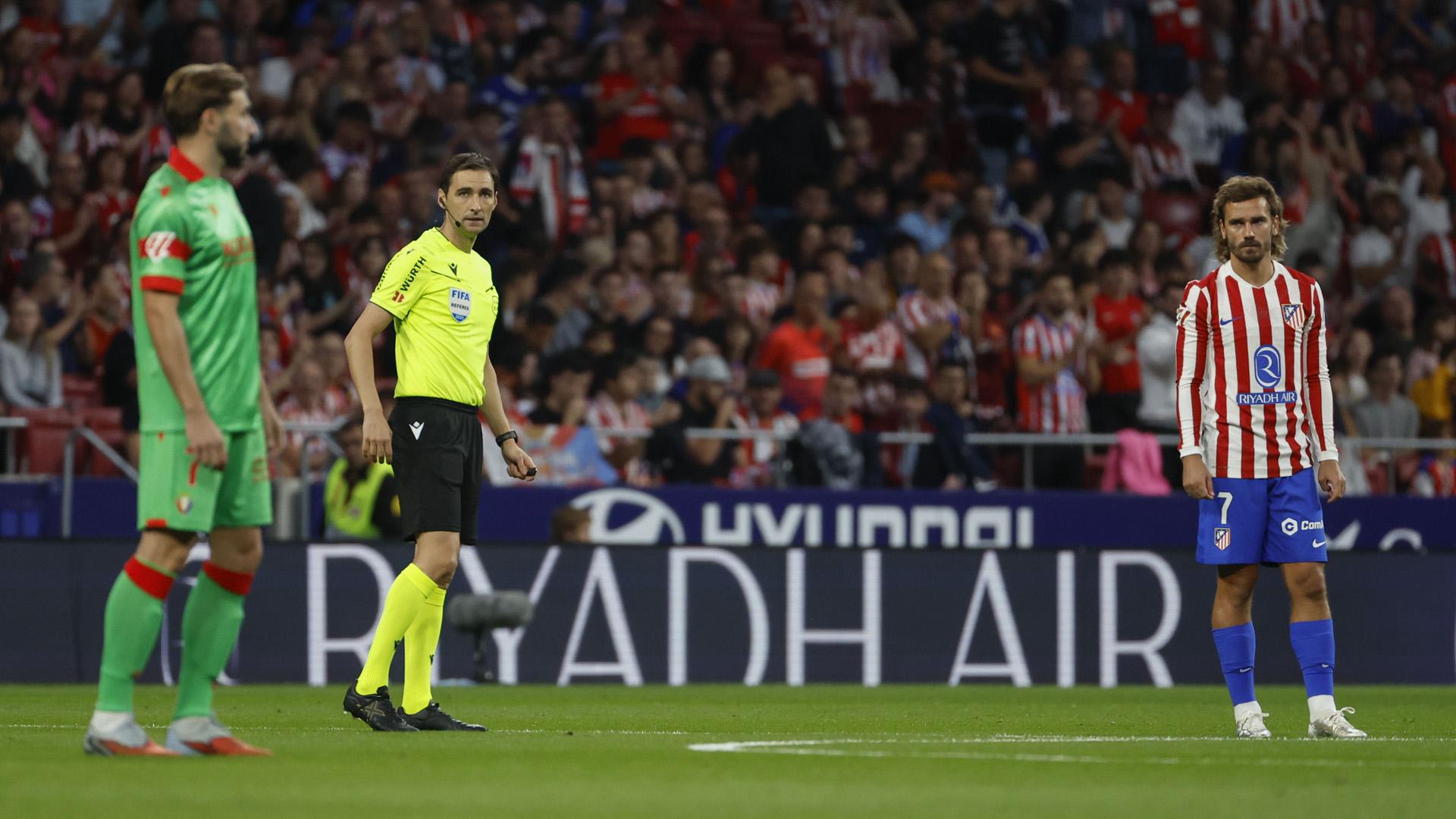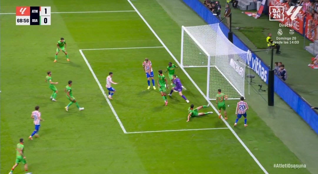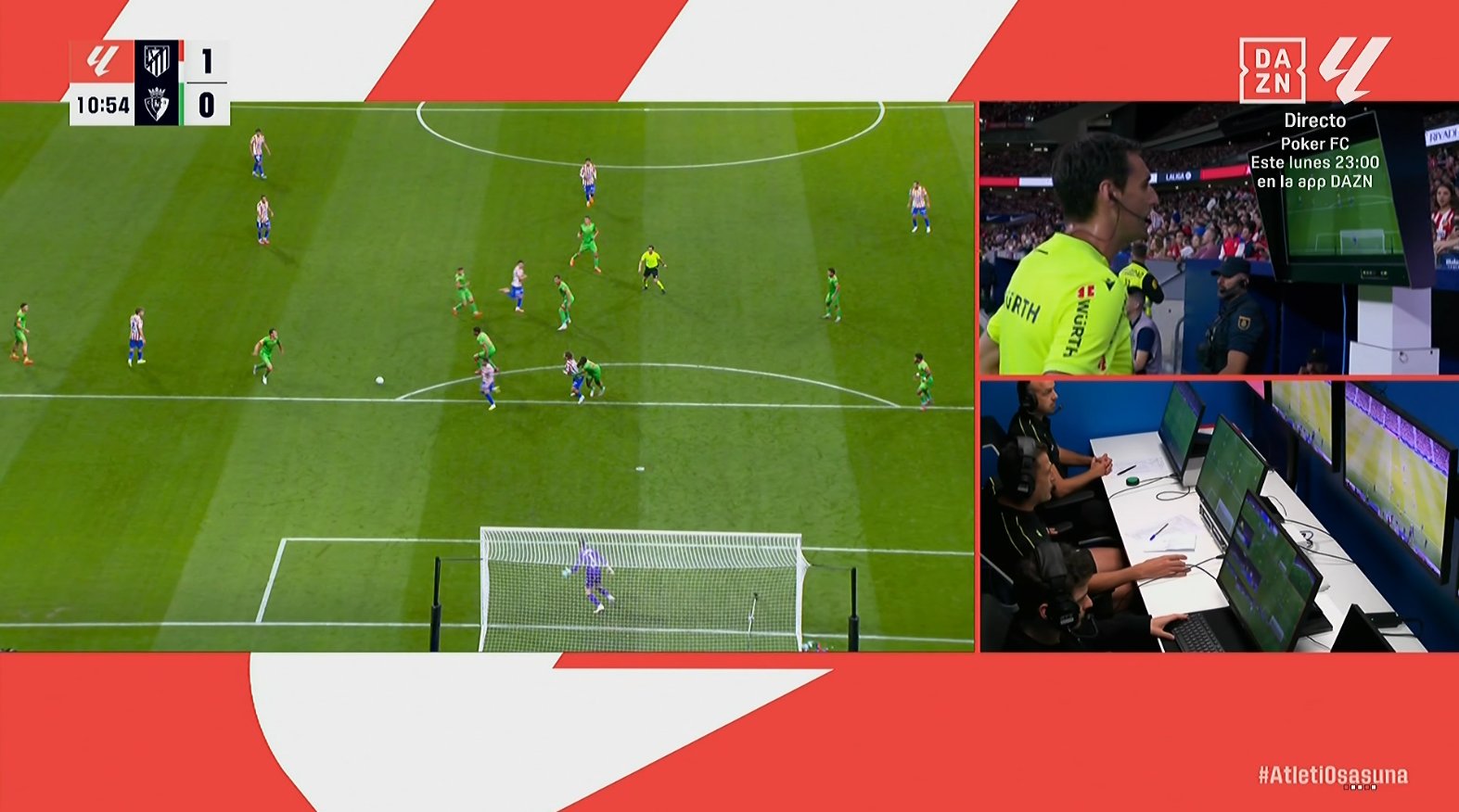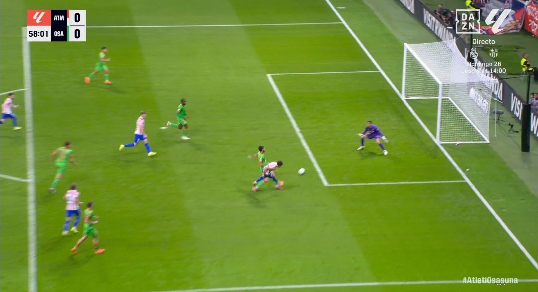 แอตฯ มาดริด อดได้ประตูขึ้นนำอย่างน่าเสียดาย อัลวาเรซ ลากตัดเข้าในก่อนจ่ายอย่างสวยงามให้ บาเอน่า หลุดไปยิงผ่าน เอร์เรร่า เข้าไปนิ่ม ๆ แต่ VAR ริบคืน โดยมองว่า กรีซมันน์ ที่อยู่ตำแหน่งล้ำหน้าไปขวางทางการเล่นของ โบโยโม่ ก่อน