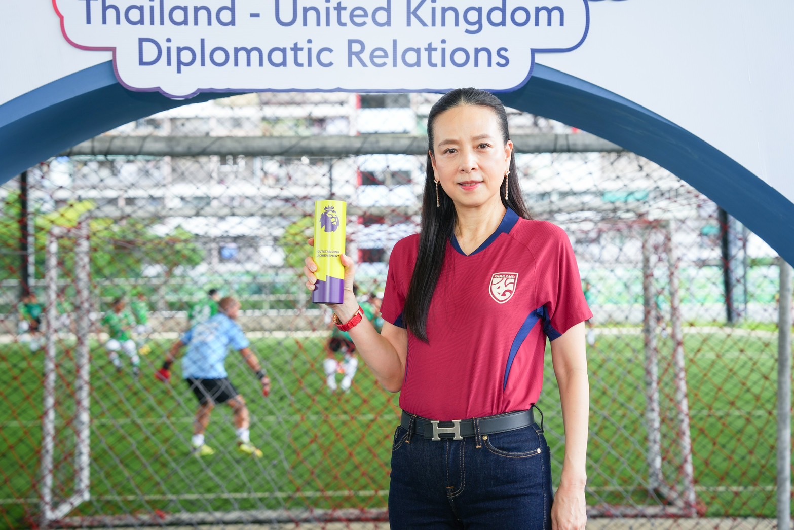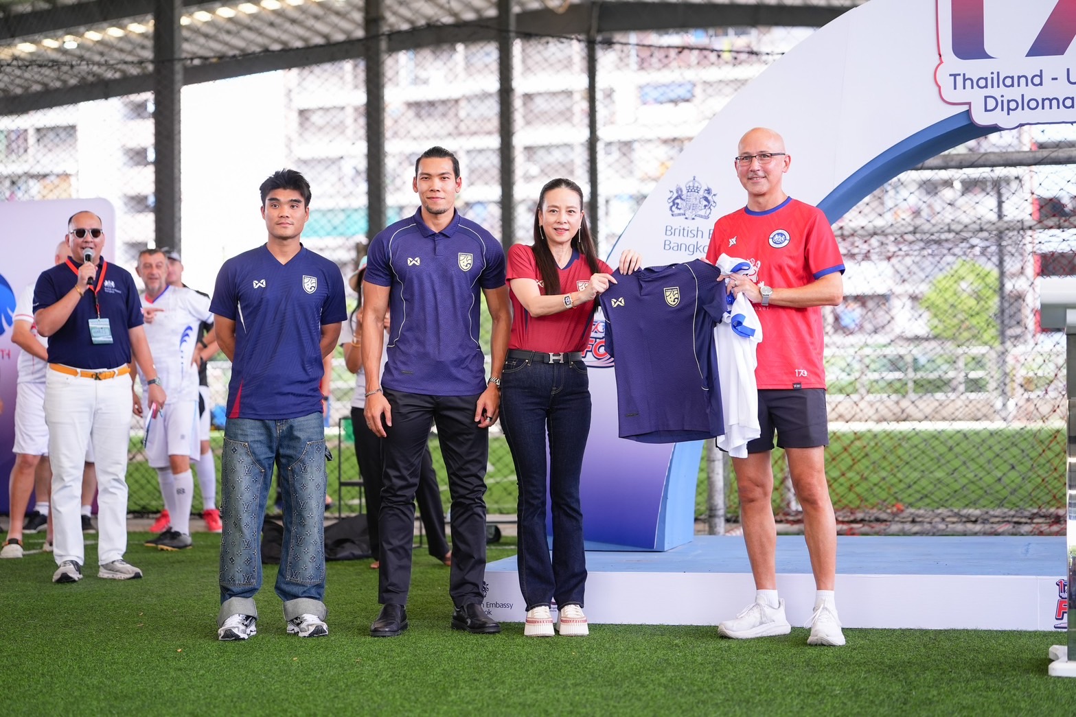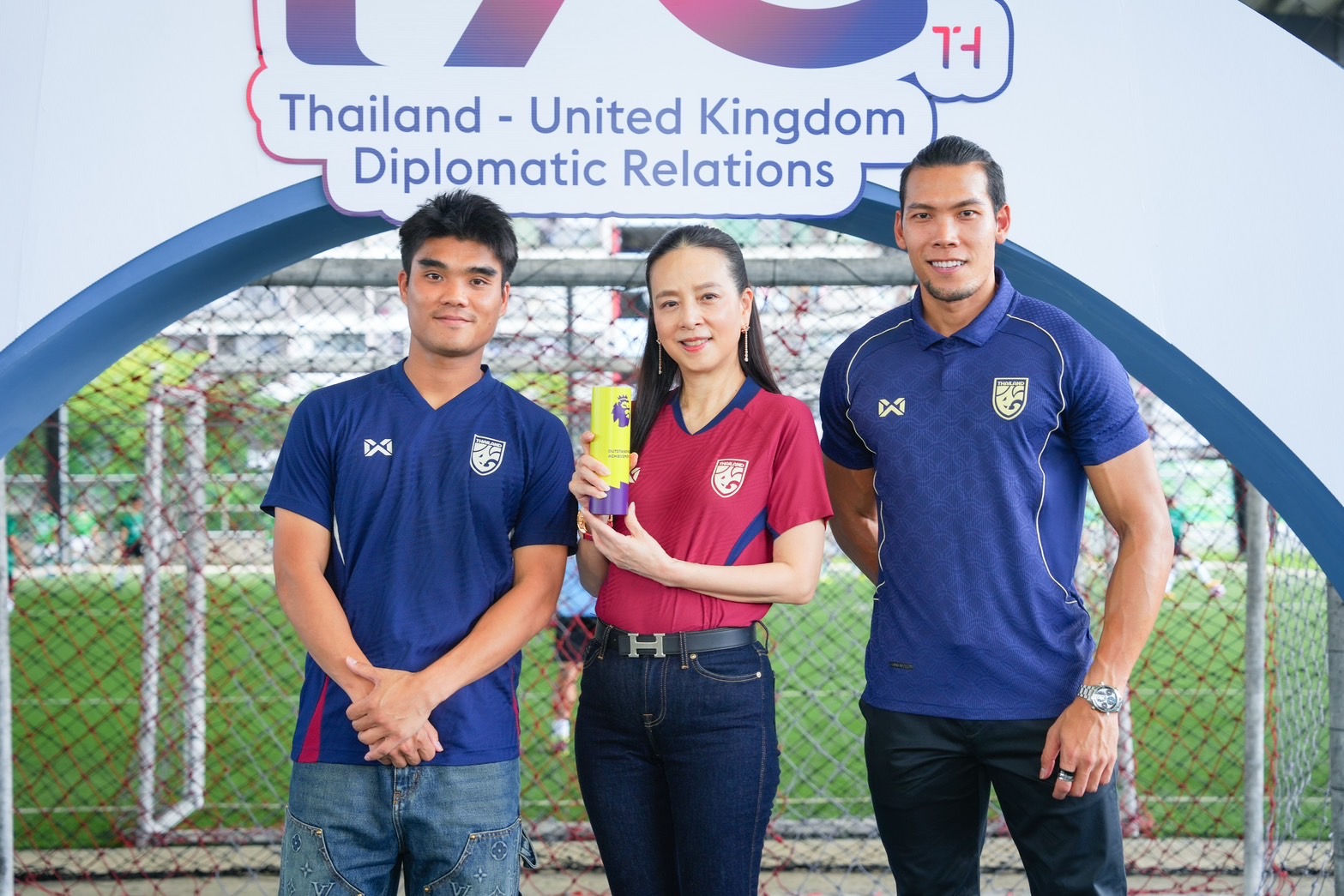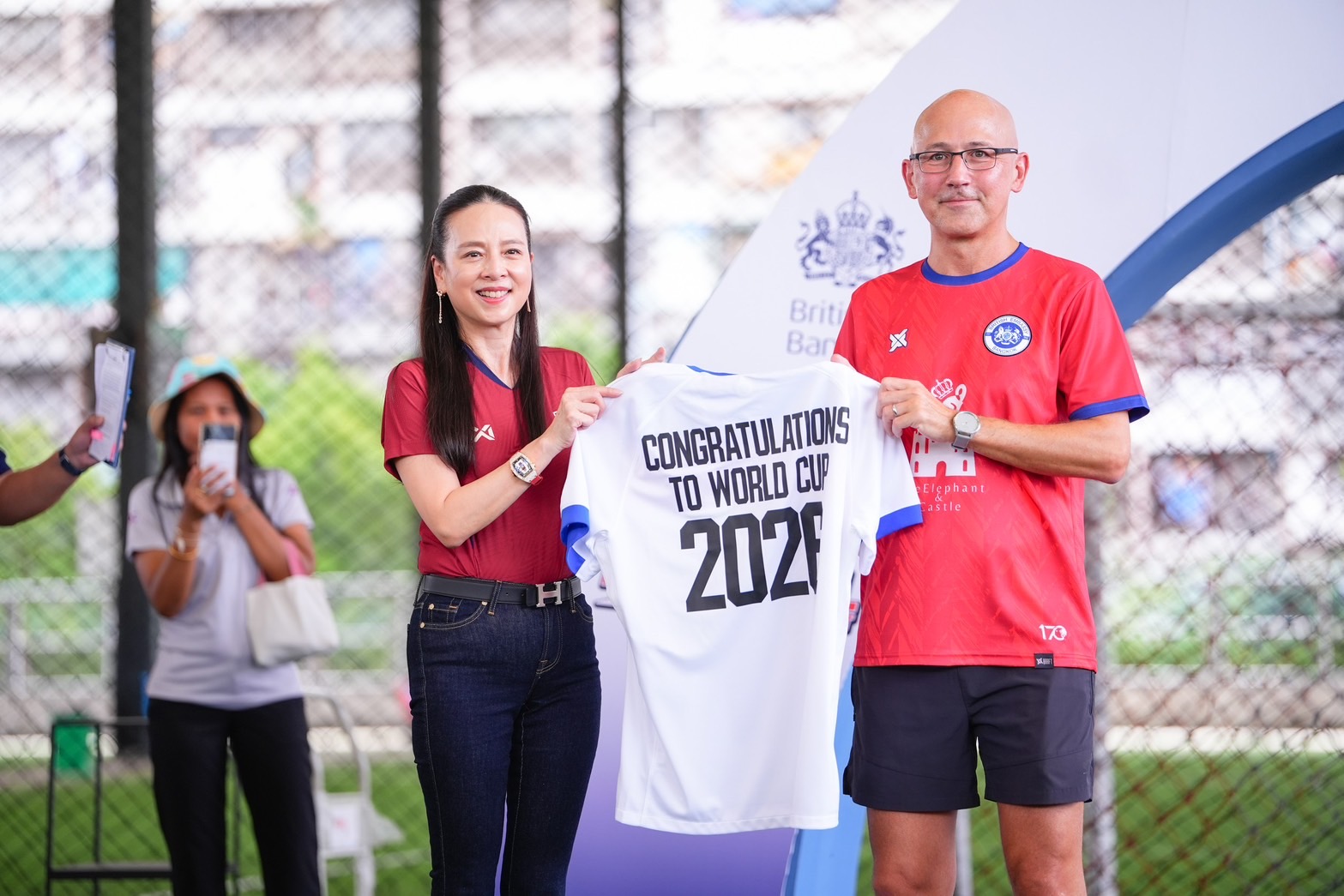 นอกจากนี้ “มาดามแป้ง” นางนวลพรรณ ล่ำซำ ยังถือโอกาสมอบเสื้อแข่งขันของ ทีมชาติอังกฤษ ให้กับ Mark Gooding เอกอัครราชทูตอังกฤษประจำประเทศไทย เช่นกัน เพื่อร่วมแสดงความยินดี ในฐานะที่ ทีมชาติอังกฤษ เป็นประเทศแรกในโซนยุโรป ที่การันตีสิทธิ์ ผ่านเข้าไปเล่นฟุตบอลโลก 2026 รอบสุดท้าย ที่ประเทศสหรัฐอเมริกา , แคนาดา และ เม็กซิโก เป็นที่แน่นอนแล้ว