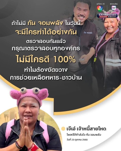 [RE: เจ๊เอ๋ - ถ้าไม่มี "กัน จอมพลัง" ในวันนี้ จะมีใครทำได้อย่าง "กัน" ทำไมต้องขัดขวางการช่วยเหลือ "ทหาร ชาวบ้าน"]