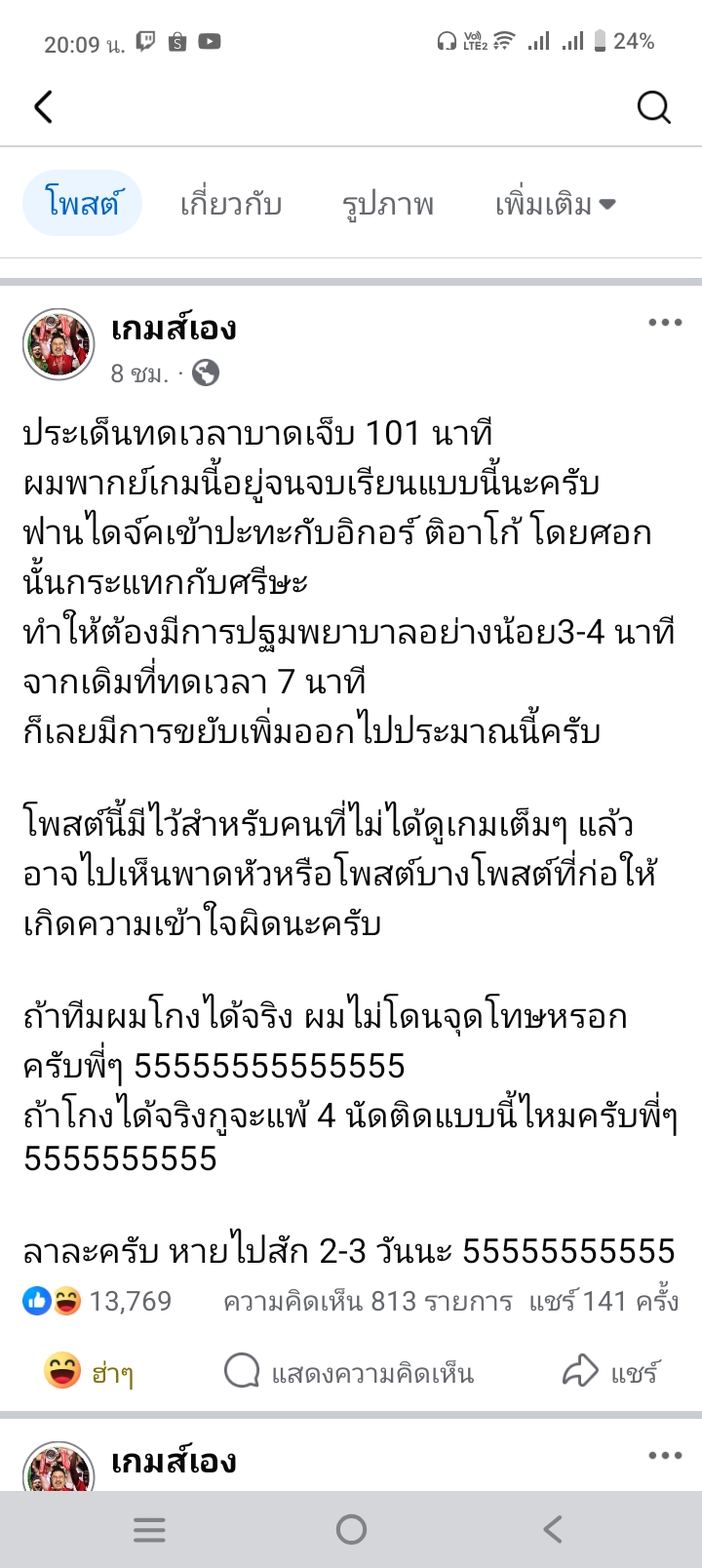 ก็ fact นะ ครึ่งแรกก็ fact จุดโทษก็ fact แบบเต็มๆ ทดเกินครึ่งหลังก็ fact 7 นาทีก็โคตรเยอะชิบหายละ ไม่มีจังหวะเสียเวลาอะไรเลย