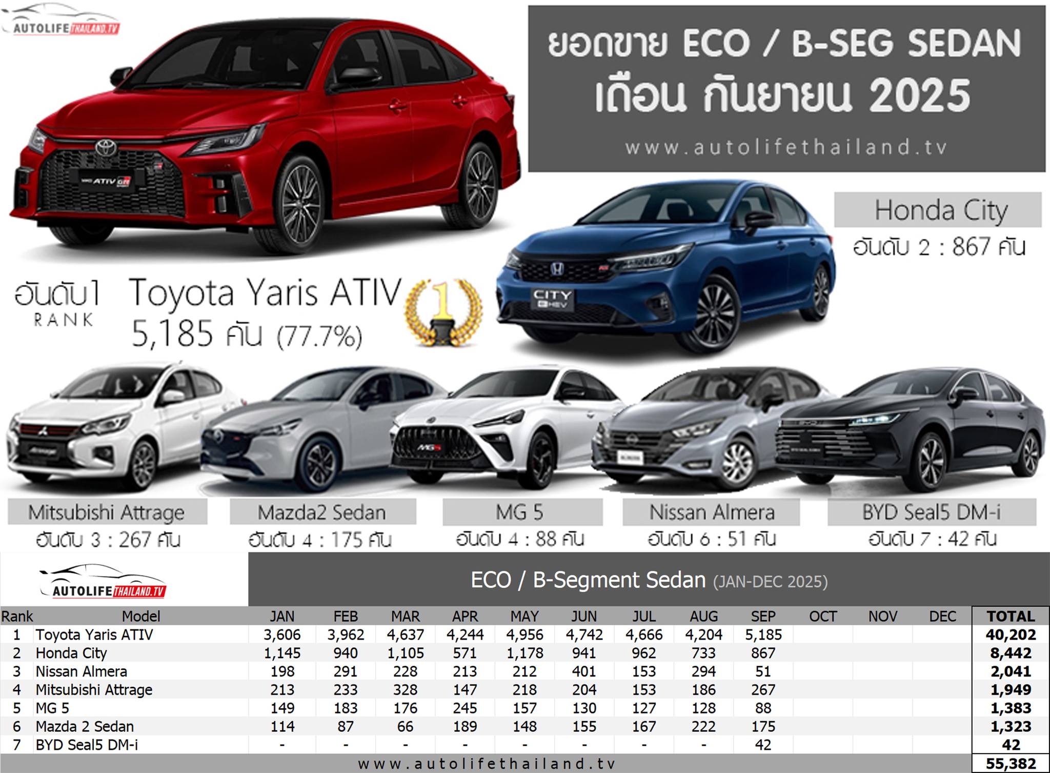 Cr. https://autolifethailand.tv/sales-report-eco-bseg-sedan-sep-2025/?fbclid=IwY2xjawNru3tleHRuA2FlbQIxMABicmlkETE0T1NOU0dkN3ZDcjdLMkJVAR78htC1vMqJqgSstGlrrzxVVfKQfKH-c9j-yKUBF3T7sr-ZxxagerlWicxs1Q_aem_6ecZYZbnOn4RF8VkAOCj4Q