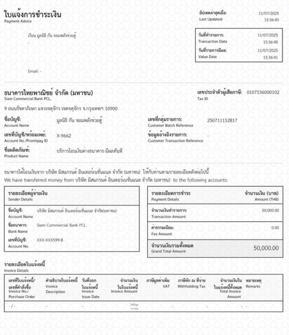 โอนมาส่วนตัว แล้วจะบอกสรรพากรยังไงวะ ทำไมไม่โอนมาในนามมูลนิธิเข้าบ.เค้าวะ