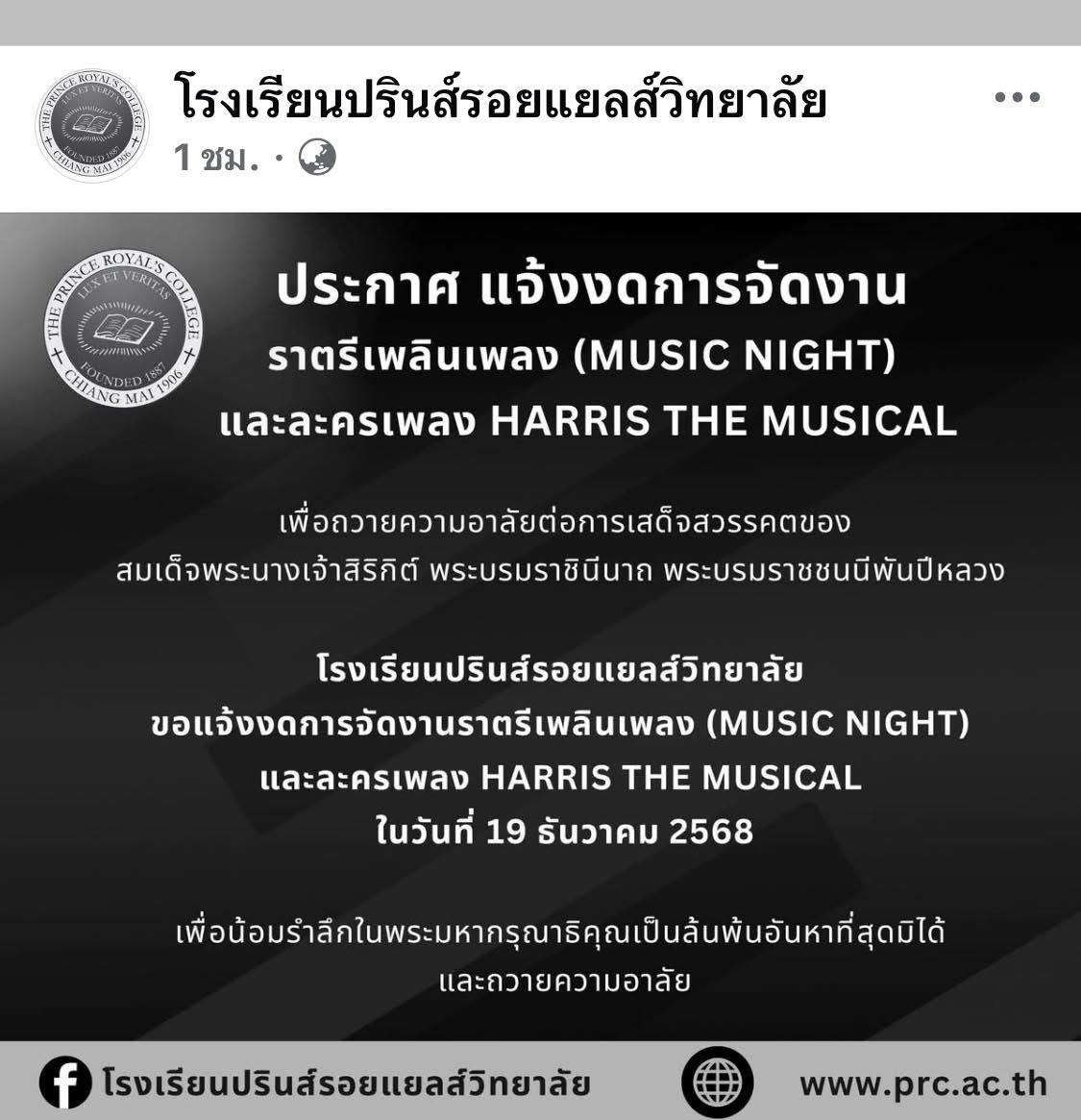 [RE: โรงเรียนปรินส์รอแยล ประกาศยกเลิกงานแสดง Harris the Musical วันที่ 19 ธ.ค.]
