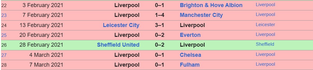 แพ้ 4 นัดติด ในช่วงนั้น 7 นัดชนะ 1 แพ้ 6 นัด (คาบ้าน 6 นัดติด)