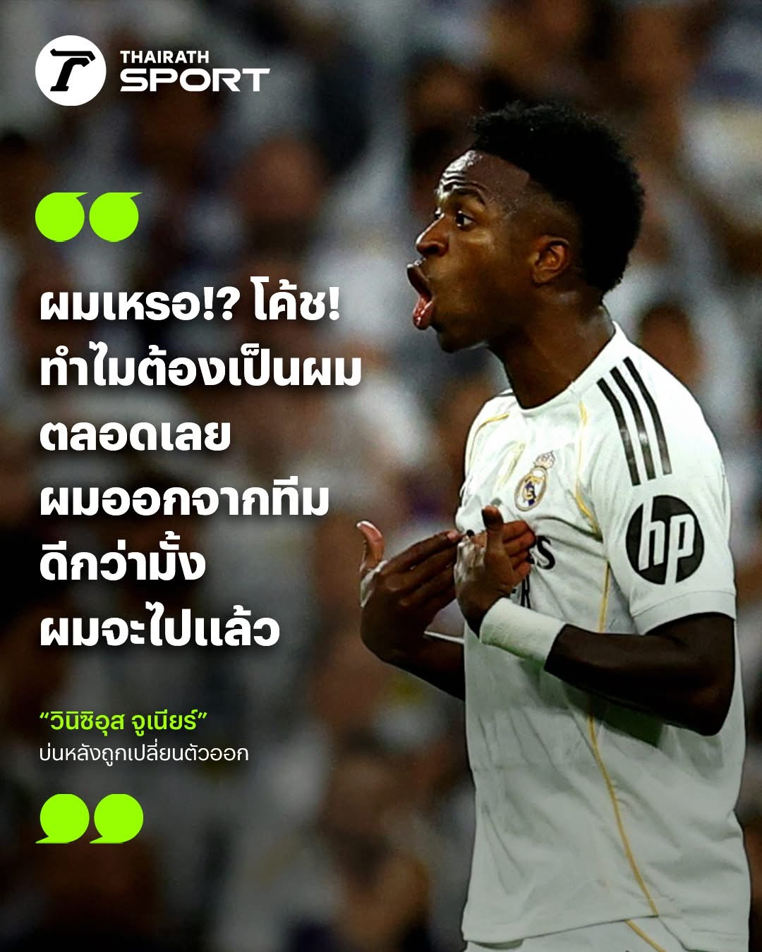 DAZN España ถอดบทสนทนาของ วินิซิอุส จูเนียร์ ที่บ่นยับเมื่อถูก ชาบี อลอนโซ่ เปลี่ยนตัวออกจากสนามในนาทีที่ 83