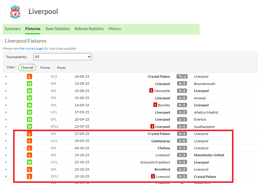 แต่จงใจนับแค่ 7 นัดอะ แล้วมันลงหงส์พอดี   ถ้าเอาสถิติ 5-6 นัด หรือ 8 นัด ขึ้นไป ก็จะไม่ใช่หงส์ละ หรือมีทีมอื่นร่วมด้วย