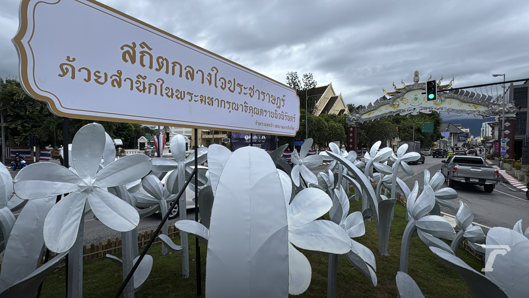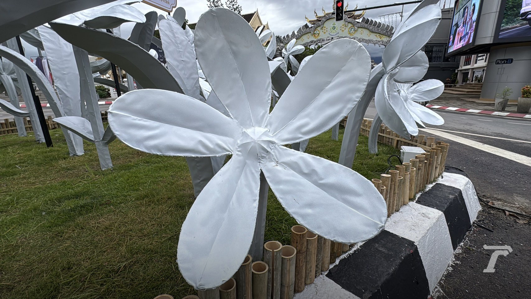 จากการลงพื้นที่ของผู้สื่อข่าว ณ จุดติดตั้ง พบว่าดอกไม้สีขาวถูกจัดวางเรียบร้อยแล้ว โดยทางผู้จัดงานได้นำดอกไม้ชุดเดิมที่เคยถูกพ่นสีดำไป ทาสีขาวทับอย่างหนา และได้ ตัดไฟ LED ด้านในออก ท่ามกลางดอกไม้สีขาว ยังมีการติดตั้ง ป้ายเทิดพระเกียรติสมเด็จพระนางเจ้าสิริกิติ์ พระบรมราชินีนาถ พระบรมราชชนนีพันปีหลวง ด้วย