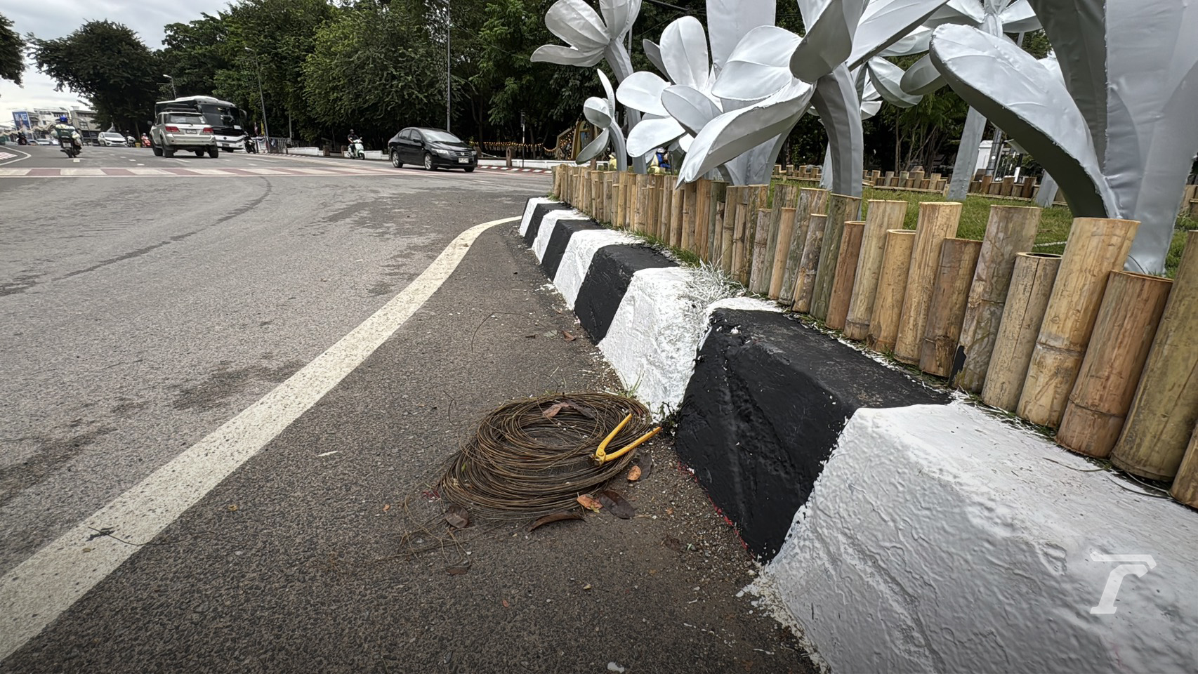 จบดราม่า “ดอกไม้ดำ” สะพานนวรัฐ เจ้าหน้าที่นำดอกไม้สีขาวล้วนติดตั้งใหม่