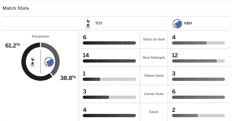 โคเปนเฮเก้น เป็นรองแต่พยายามสู้ทุกจังหวะ มีโอกาสง้างไกจบสกอร์เป็นระยะ ภาพรวม สเปอร์ส ดีกว่าแต่ก็ประมาทไม่ได้
