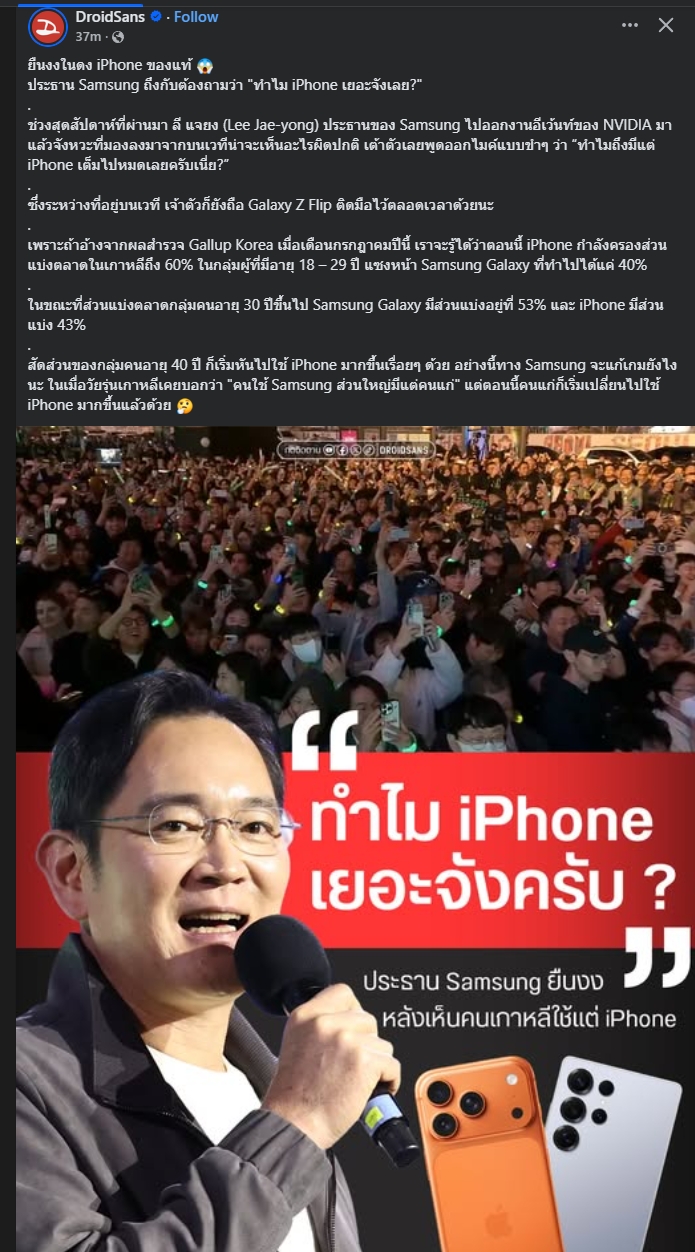 [RE: ยืนงงในดง iPhone ประธาน Samsung ถึงกับต้องถามว่า "ทำไม iPhone เยอะจังเลย?"]