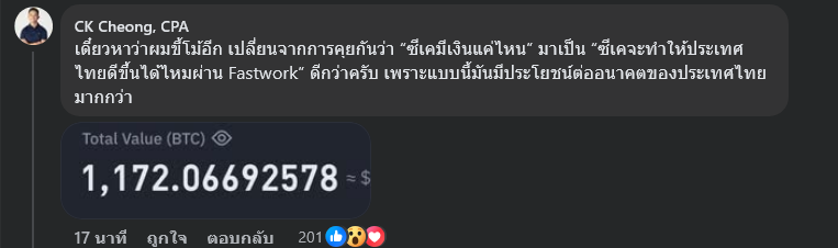 จริงหรือเท็จที่ CK มี 1,000 BTC