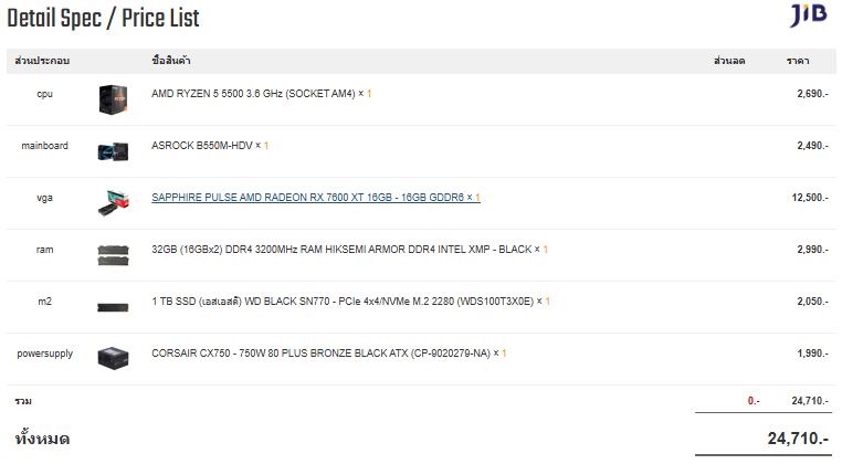 **หรือซื้อทุกอย่างใน Shopee ลดราคา น่าจะอยู่ประมาณ 26,000 บาท แล้วไปให้ร้านคอมใกล้บ้านประกอบให้อีกที