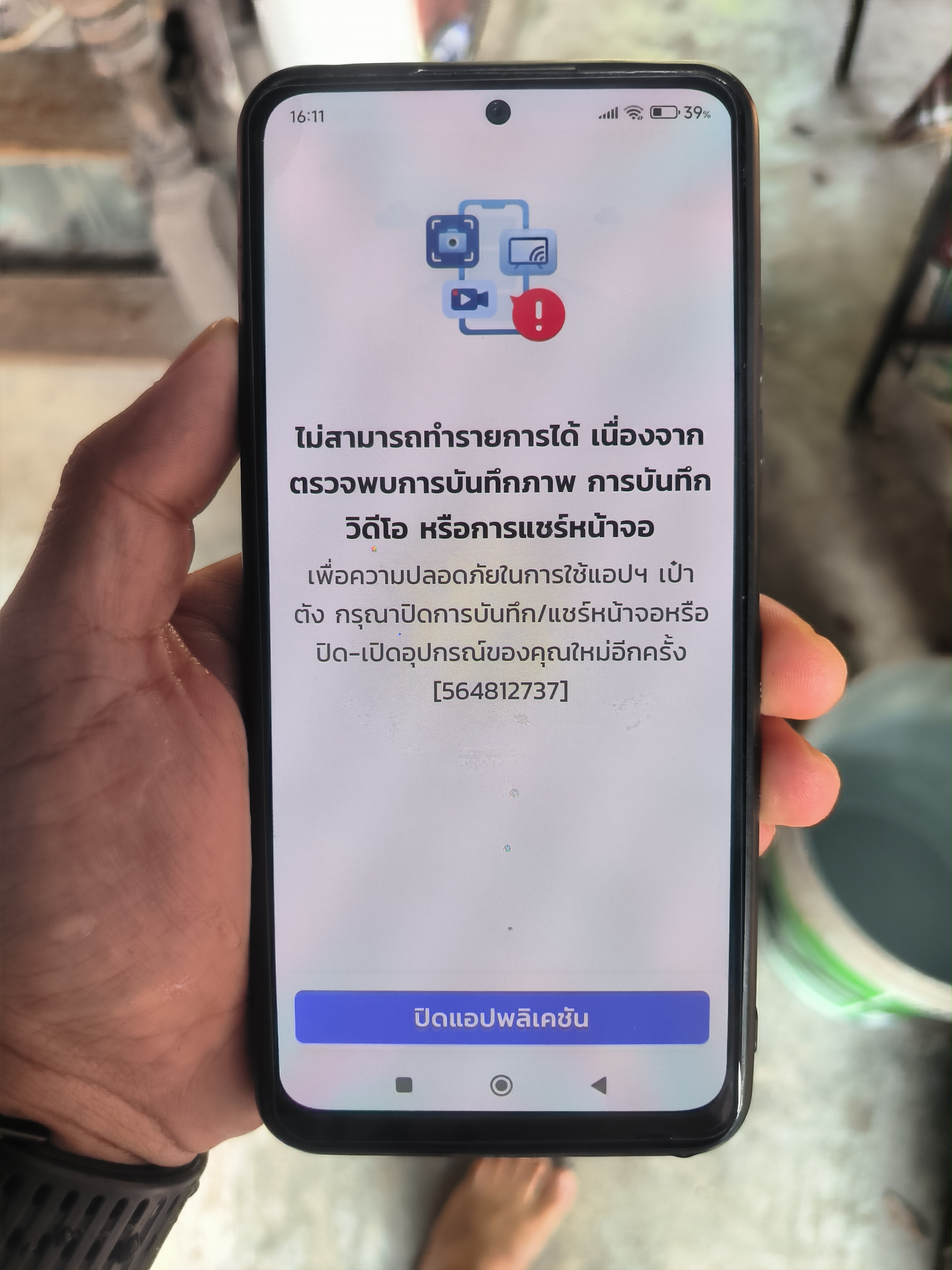 เปิดปิดเครื่องใหม่รอบเดียวก็หายแล้วครับผมก็เปิดโปรแกรมอัดหน้าจอก่อนที่จะเข้าแอพเป๋าตังค์