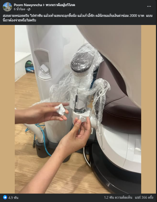 [RE: ไปทำฟัน แล้วทำเก้าอี้หัก คลีนิกขอเก็บเงินค่าซ่อม2000]