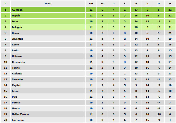 นาโปลี แชมป์เก่าเริ่มแย่ เกมรุกฝืดยิงประตูไม่ได้เป็นเกมที่ 3 ติดต่อกัน แถมนัดนี้ถึงแพ้โดน ไธจ์ส ดัลลิงก้า กับ จอน ลูคูมี่ ผลิตคนละสกอร์ในครึ่งหลัง บุกพ่าย โบโลญญ่า 2-0 พลาดโอกาสแซง เอซี มิลาน กลับขึ้นจ่าฝูง เซเรีย อา